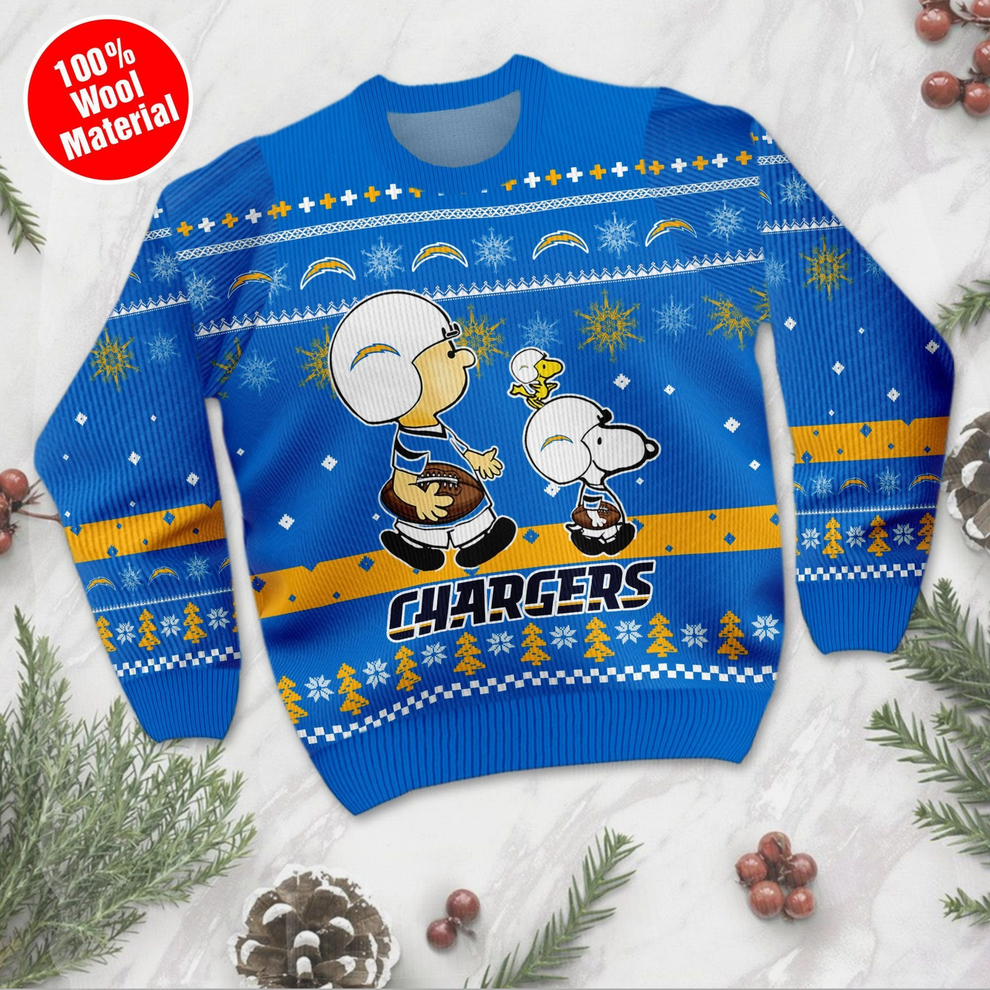 Los Angeles Chargers Funny Charlie Brown Peanuts Snoopy Ugly Christmas Sweater, Perfect Holiday Gift