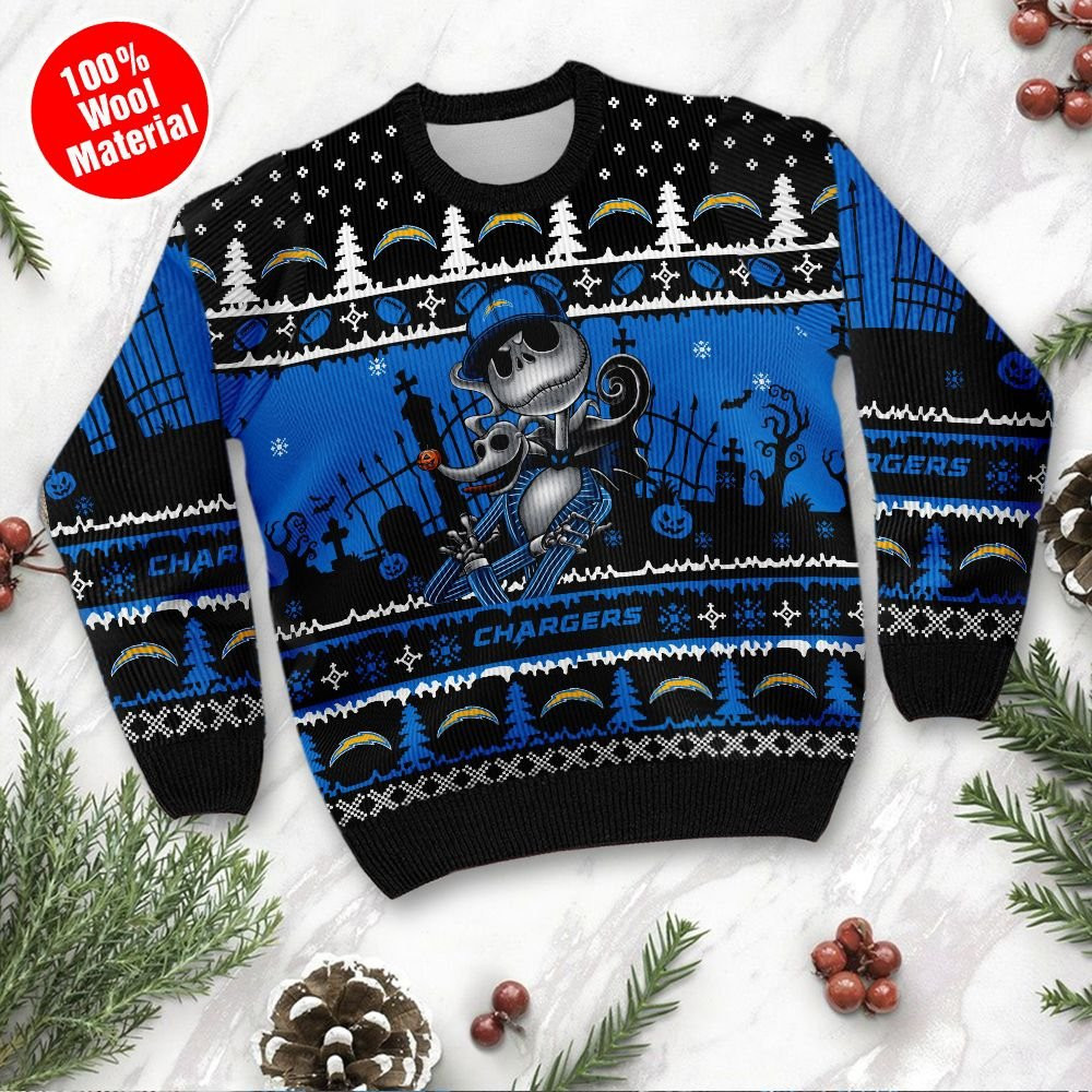 Los Angeles Chargers Jack Skellington Halloween Ugly Christmas Sweater Perfect Holiday Gift
