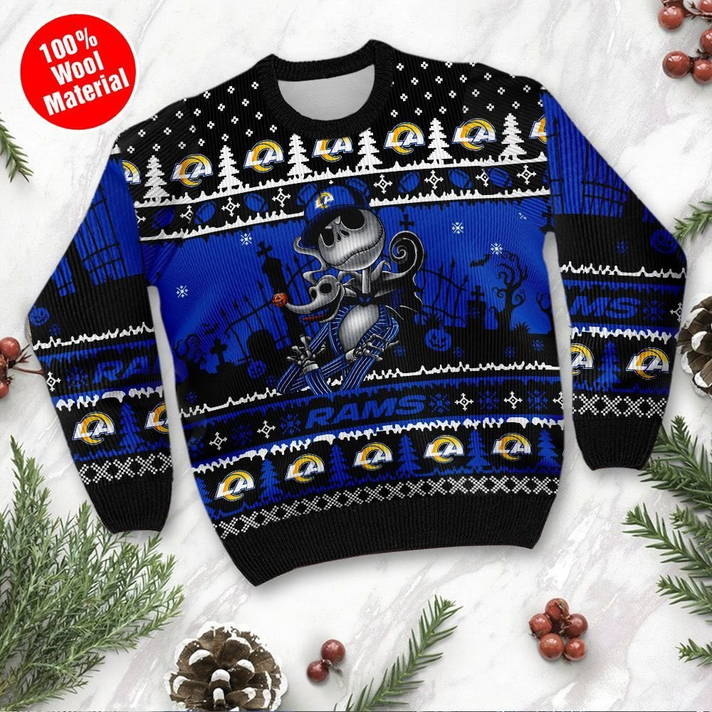 Los Angeles Rams Jack Skellington Halloween Holiday Party Ugly Christmas Sweater Perfect Holiday Gift