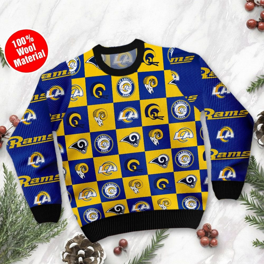 Los Angeles Rams Logo Checkered Flannel Ugly Christmas Sweater, Perfect Holiday Gift