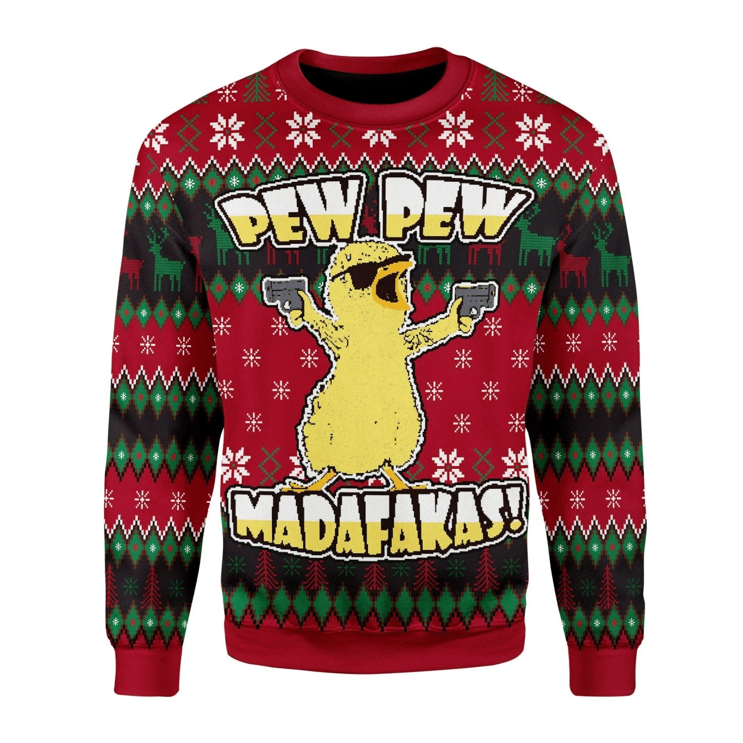 Merry Christmas Gearhomies Chicken Pew Pew Madafakas Funny Chicken Gangster Ugly Christmas Sweater, Perfect Holiday Gift