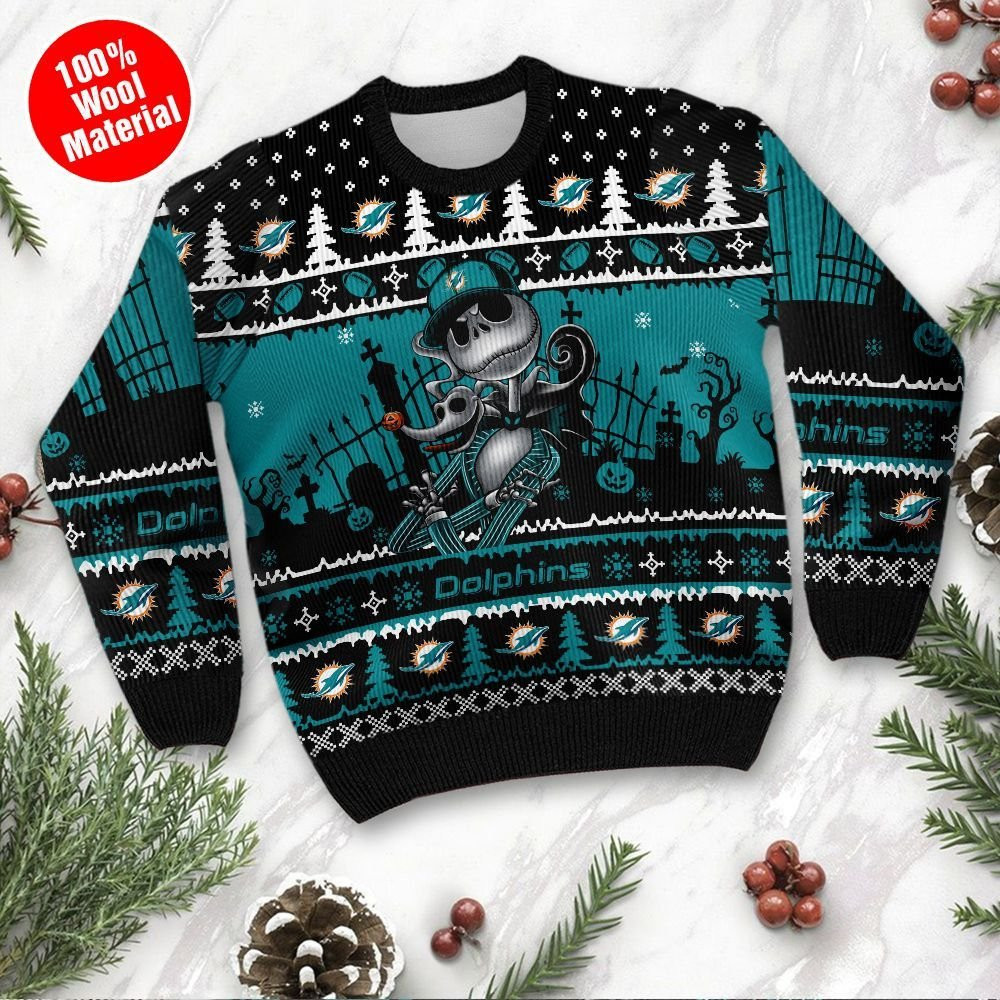 Miami Dolphins Jack Skellington Halloween Ugly Christmas Sweater, Perfect Holiday Gift