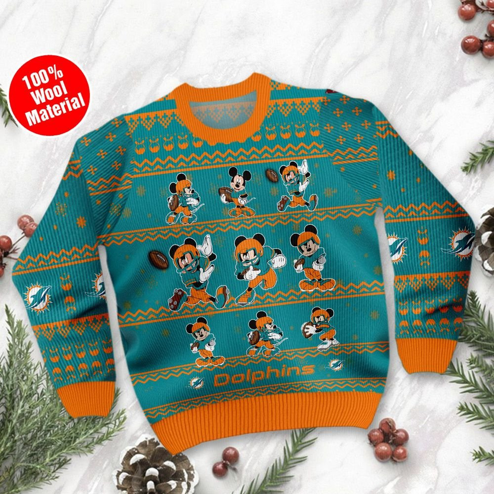 Miami Dolphins Mickey Mouse Ugly Christmas Sweater, Perfect Holiday Gift