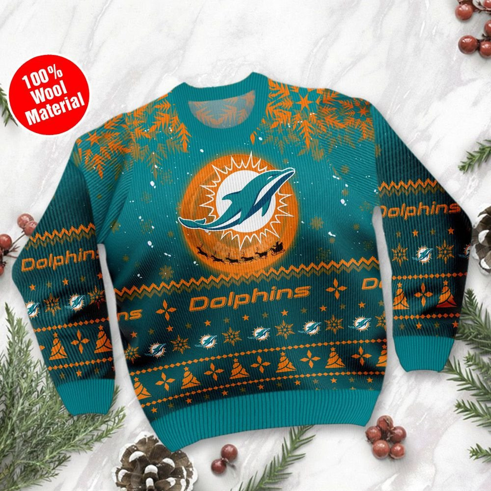 Miami Dolphins Santa Claus In The Moon Ugly Christmas Sweater, Perfect Holiday Gift