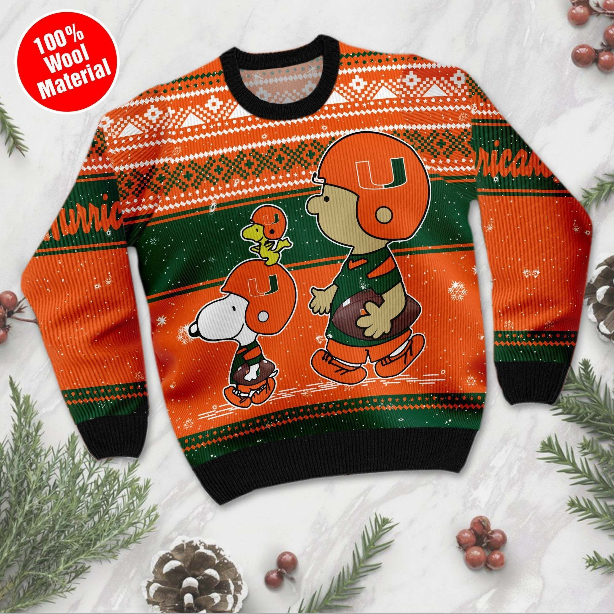 Miami Hurricanes Charlie Brown Snoopy Wear Football Jersey Ugly Christmas Sweater, Perfect Holiday Gift