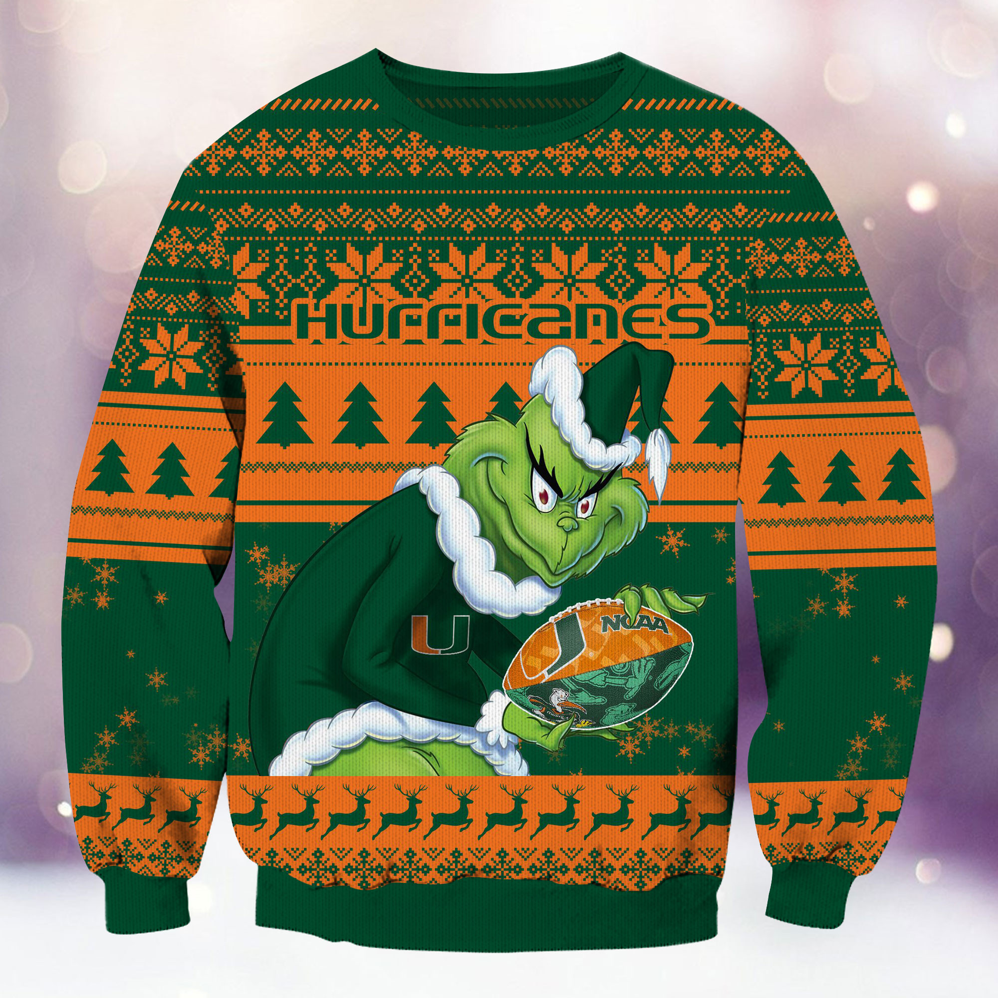 Miami Hurricanes Grinch Ugly Christmas Sweater,