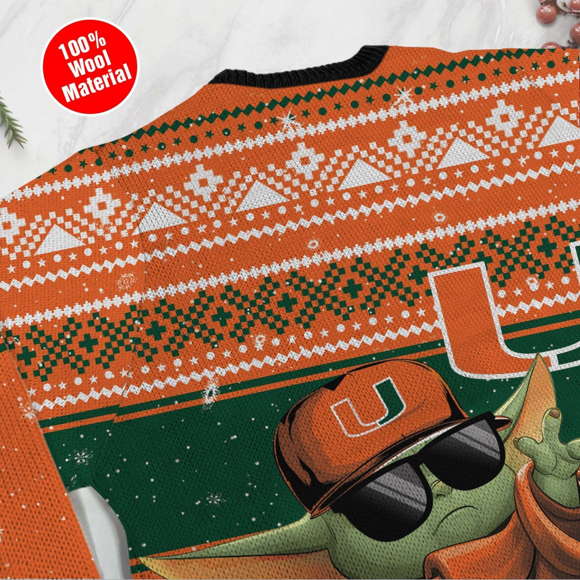 Miami Hurricanes Grogu Baby Yoda Hug Logo Ugly Christmas Sweater, Perfect Holiday Gift