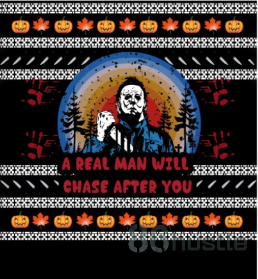Michael Myers A Real Man Will Chase After You For Unisex Ugly Christmas Sweater, Perfect Holiday Gift