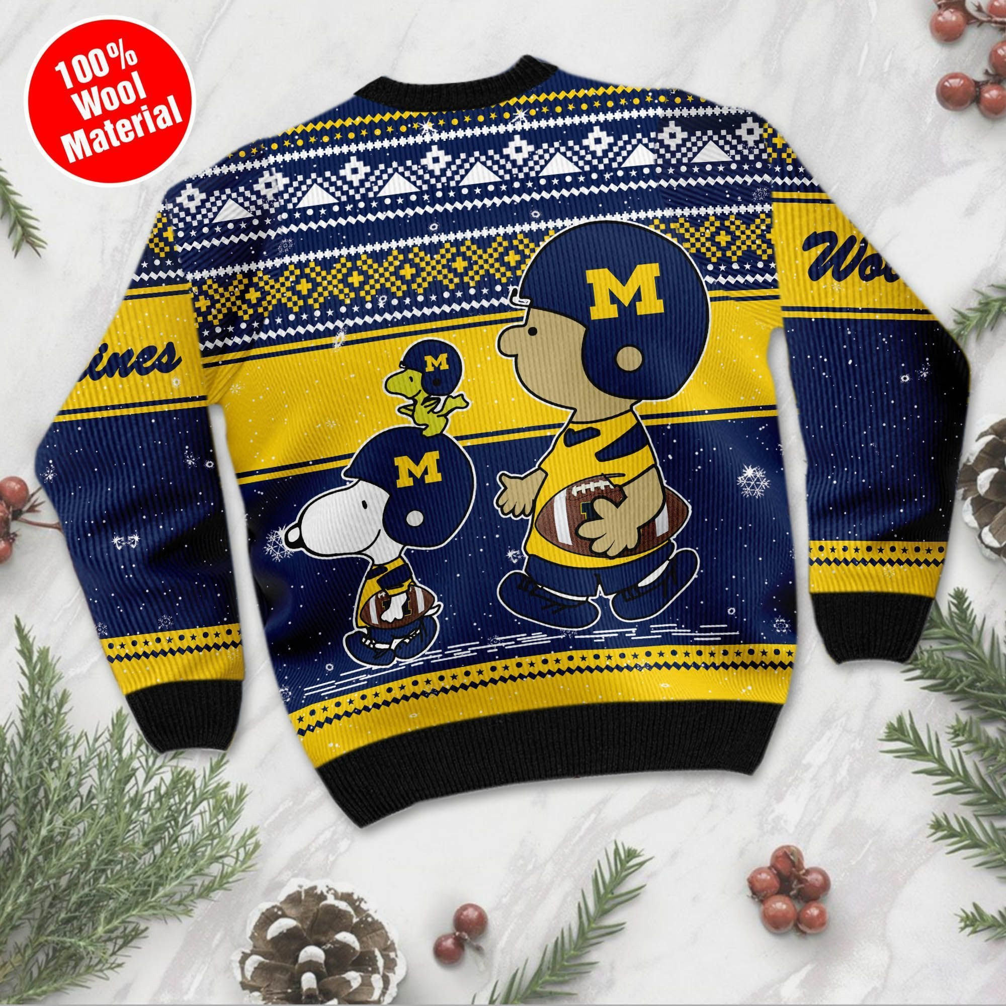 Michigan Wolverines Charlie Brown Snoopy Wear Football Jersey Ugly Christmas Sweater, Perfect Holiday Gift