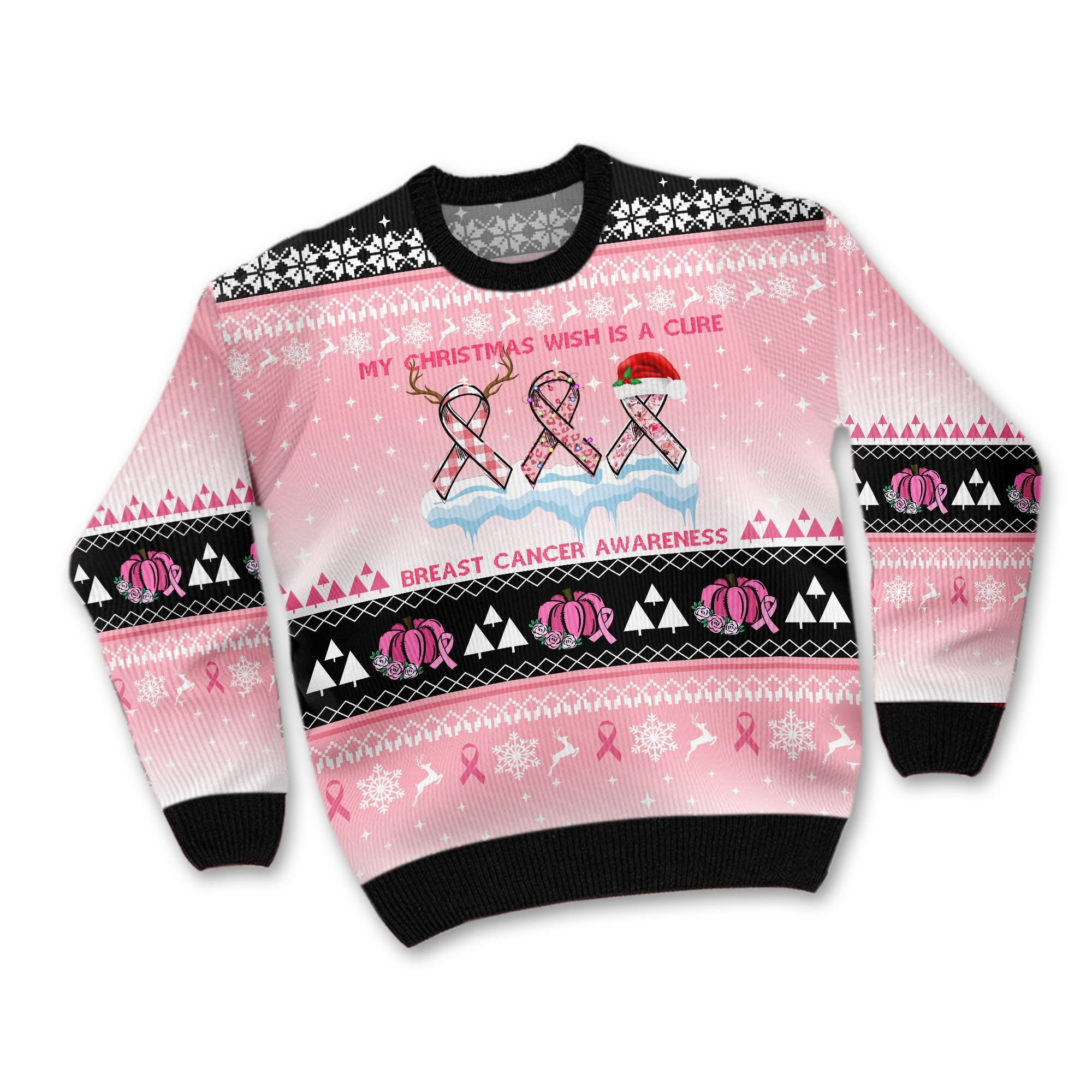 My Christmas Wish Is A Cure Breast Cancer Awareness For Breast Cancer Supporters Ugly Christmas Sweater, Perfect Holiday Gift