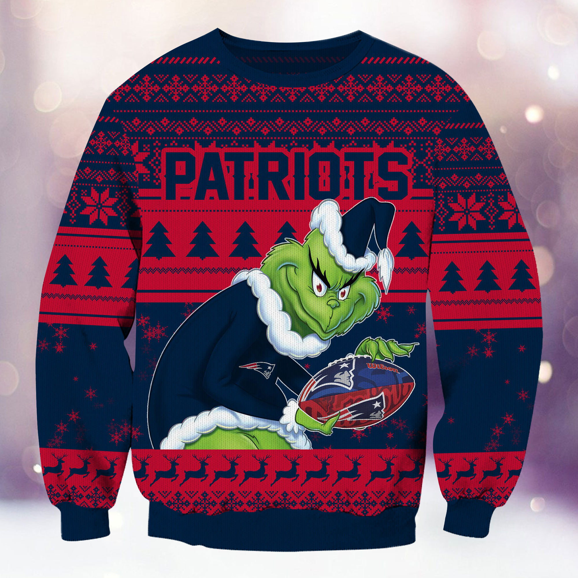 New England Patriots Grinch Hug Ugly Christmas Sweater,