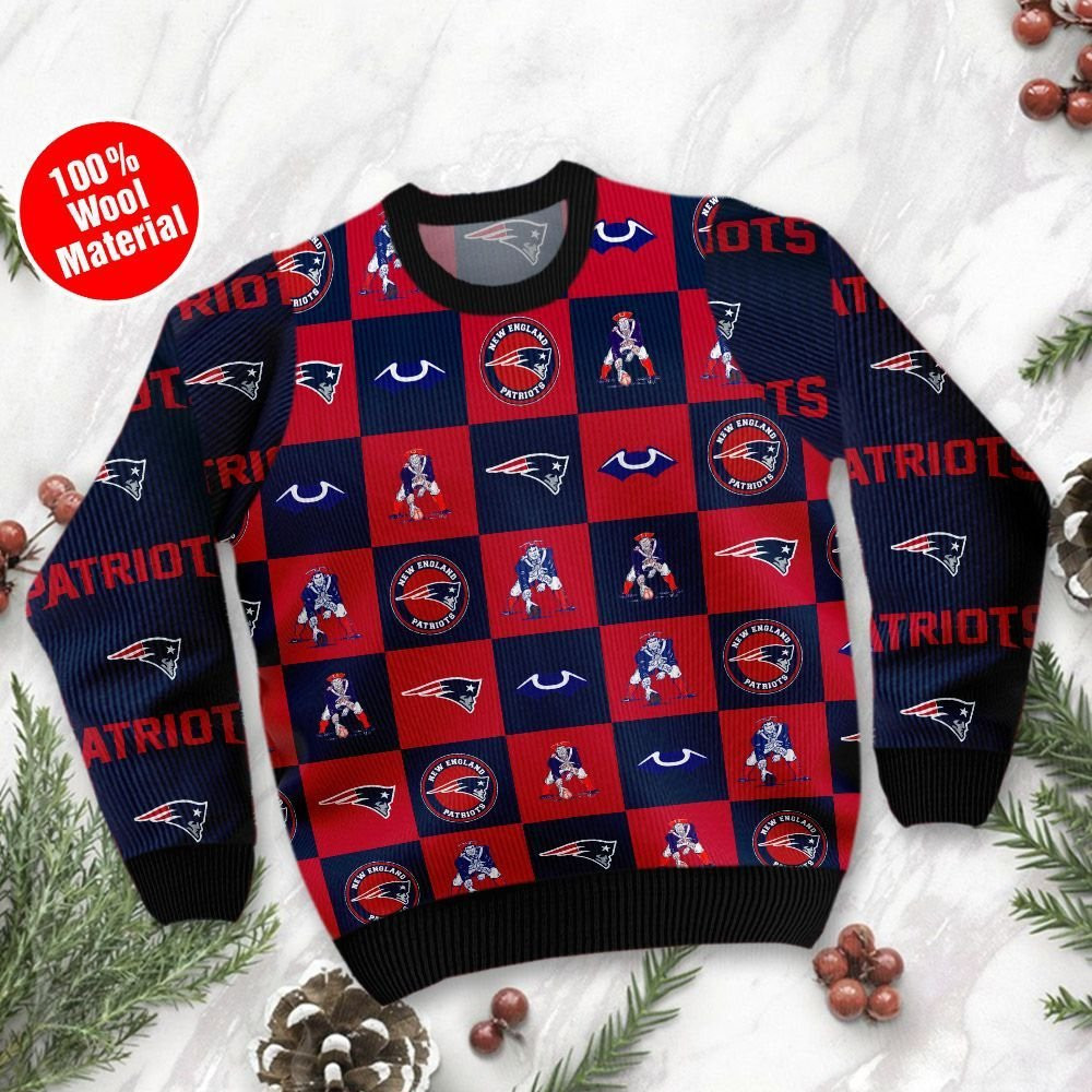 New England Patriots Logo Checkered Flannel Ugly Christmas Sweater, Perfect Holiday Gift