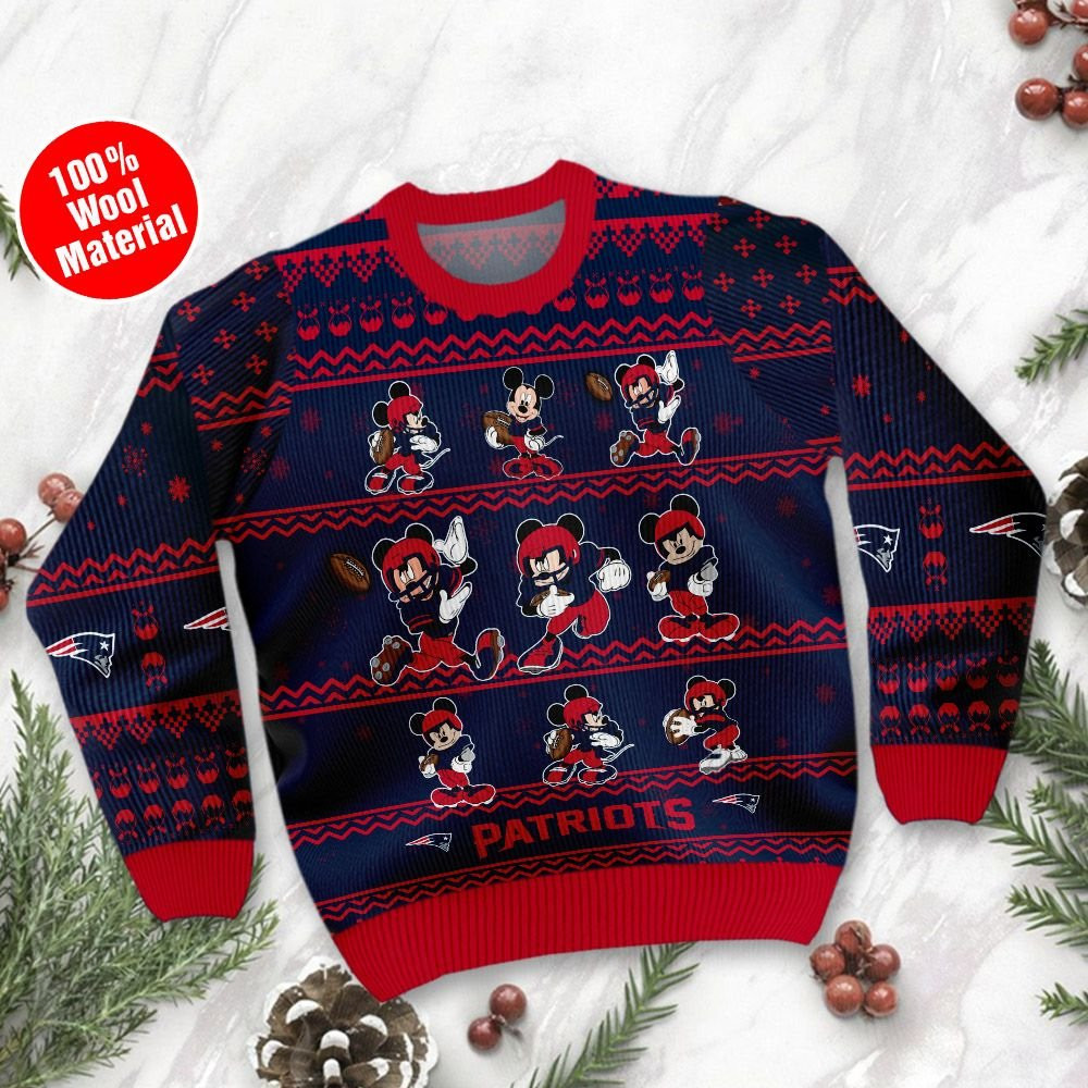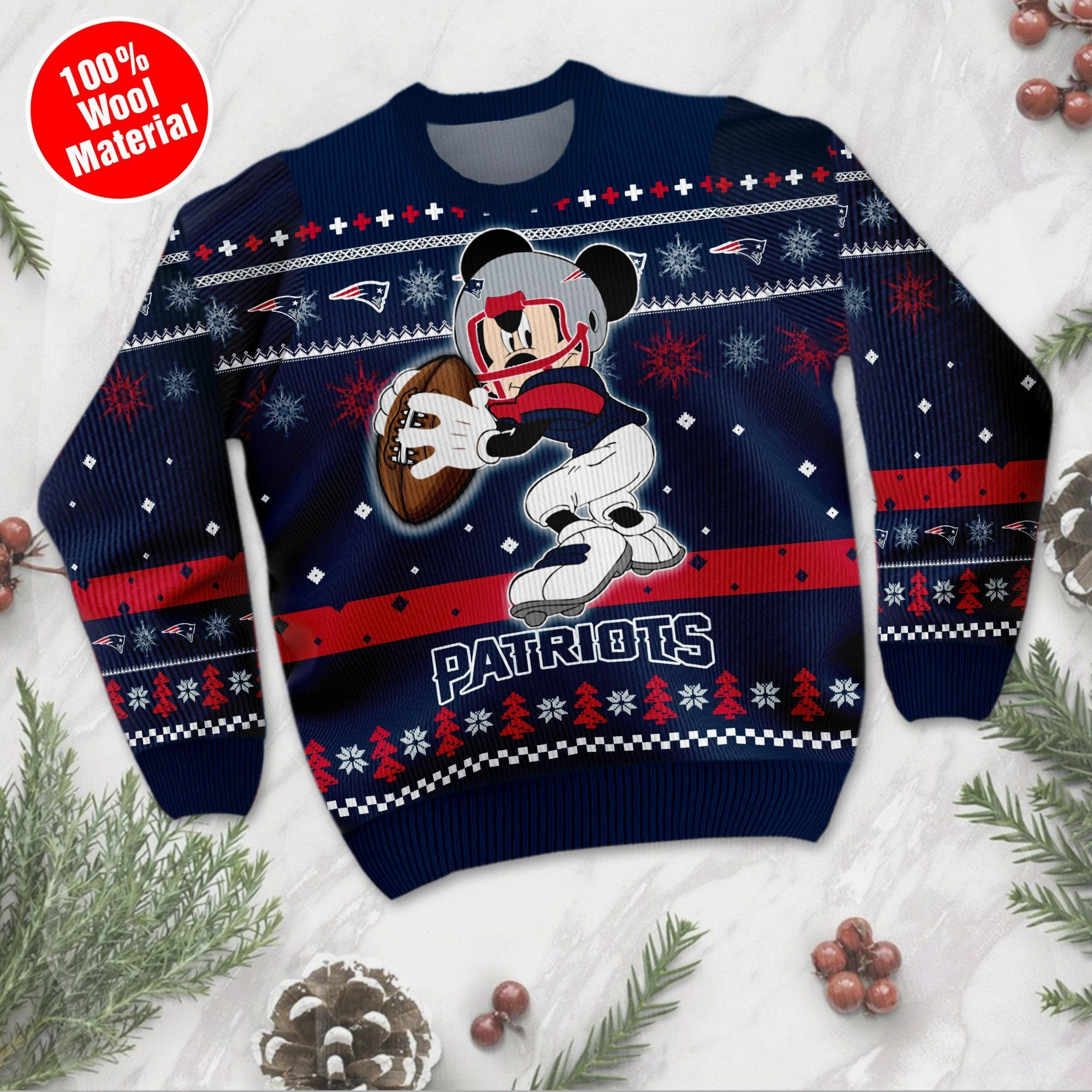 New England Patriots Mickey Mouse Ugly Christmas Sweater, Perfect Holiday Gift