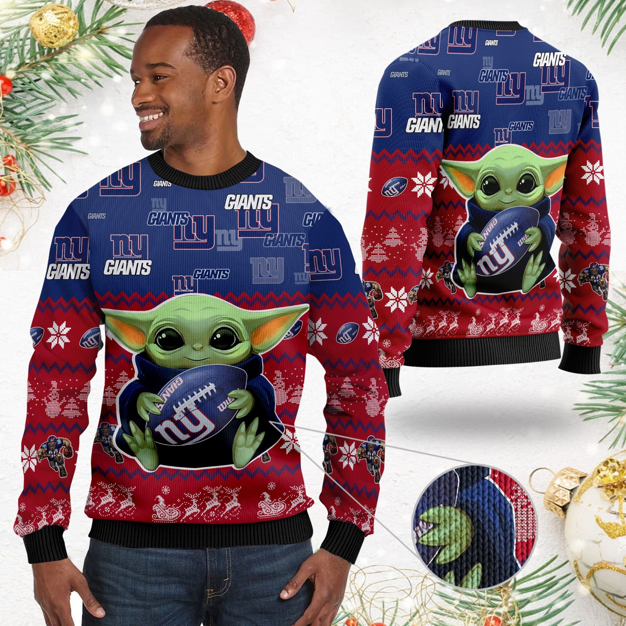 New York Giants Baby Yoda Shirt For American Football Fans Ugly Christmas Sweater, Perfect Holiday Gift