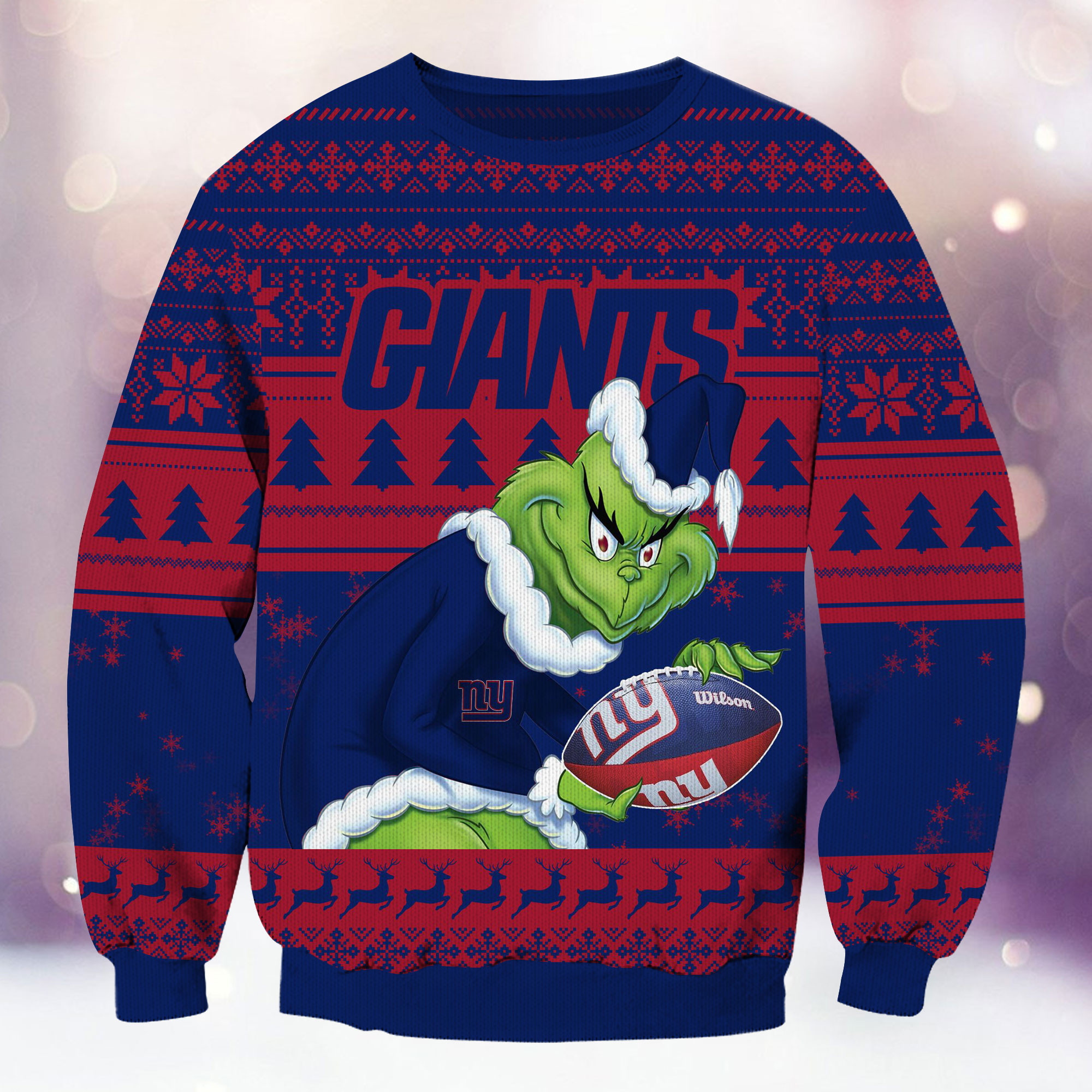 New York Giants Grinch Hug Ugly Christmas Sweater,