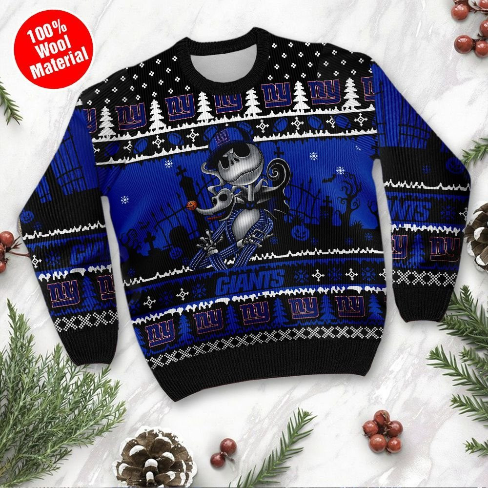 New York Giants Jack Skellington Halloween Ugly Christmas Sweater Perfect Holiday Gift