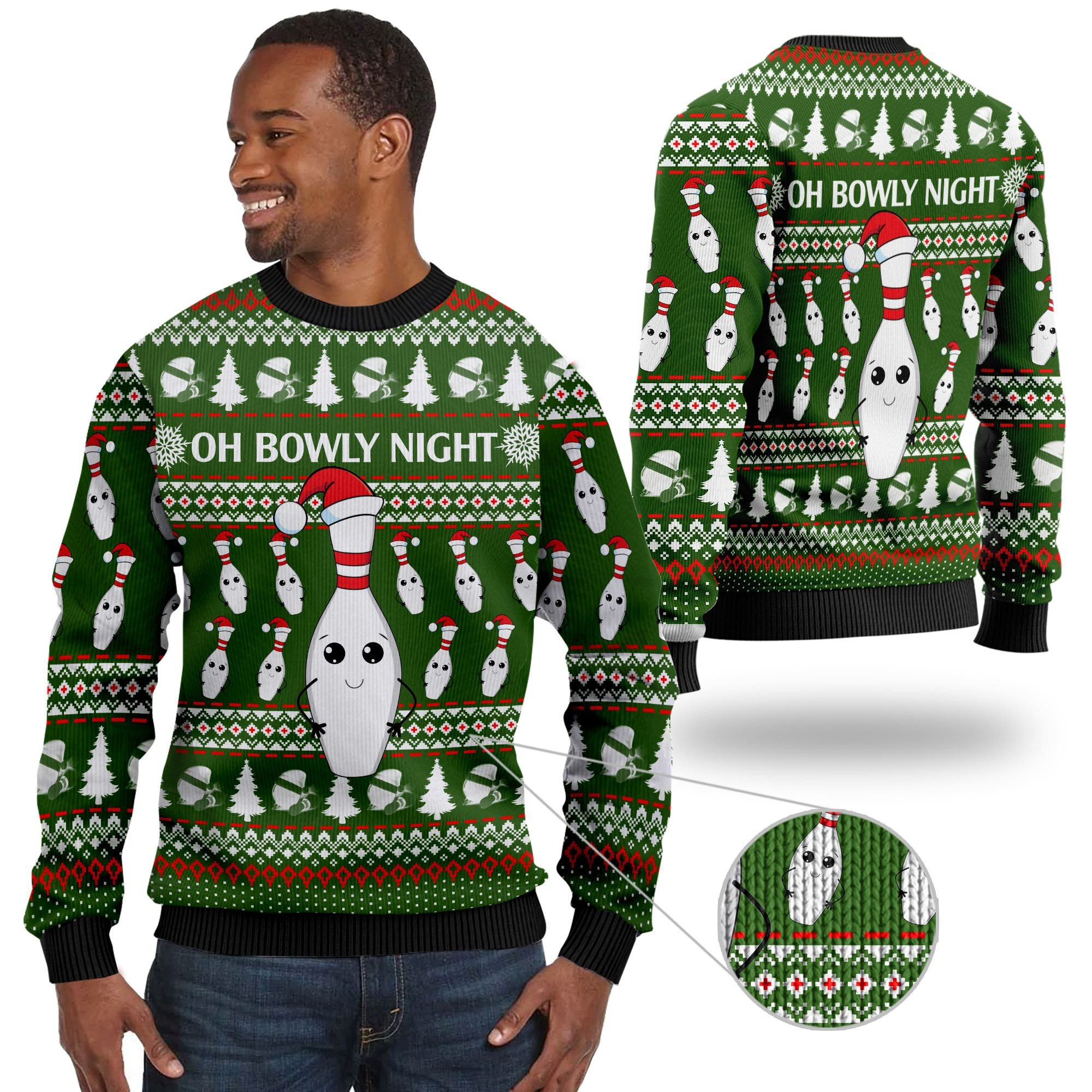 Oh Bowly Night With Christmas Patterns For Bowling And Sport Lovers Ugly Christmas Sweater, Perfect Holiday Gift