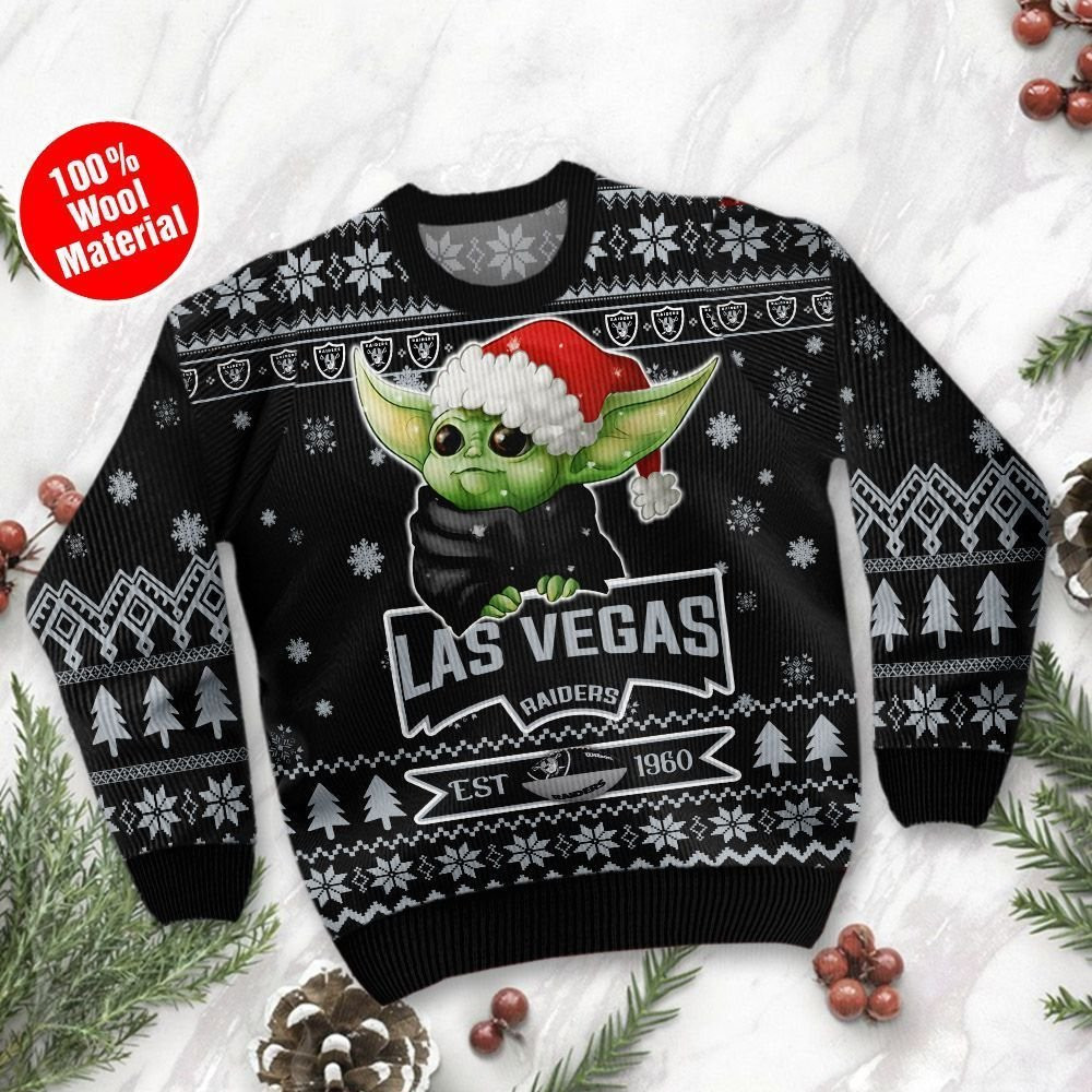 Las Vegas Raiders Cute Baby Yoda Grogu Ugly Christmas Sweater Perfect Holiday Gift
