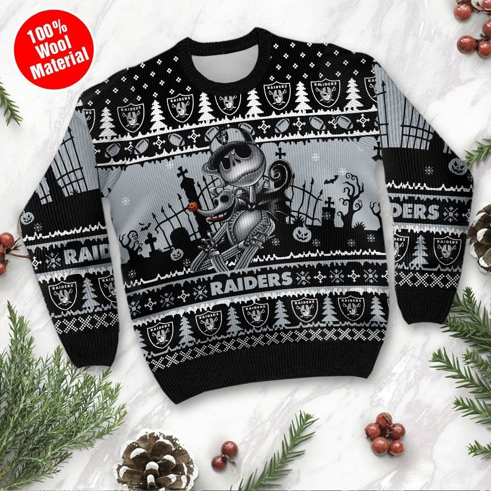 Las Vegas Raiders Jack Skellington Halloween Ugly Christmas Sweater Perfect Holiday Gift
