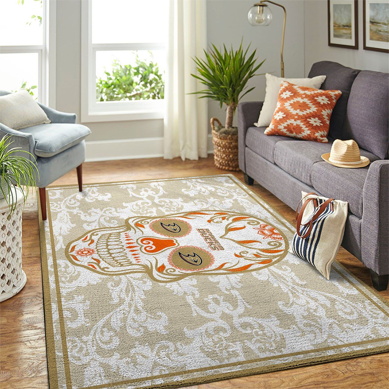 Anaheim Ducks Team Logo Skull Flower Rectangle Area Rug – Full Print Carpet For Living Room & Bedroom Home Decor