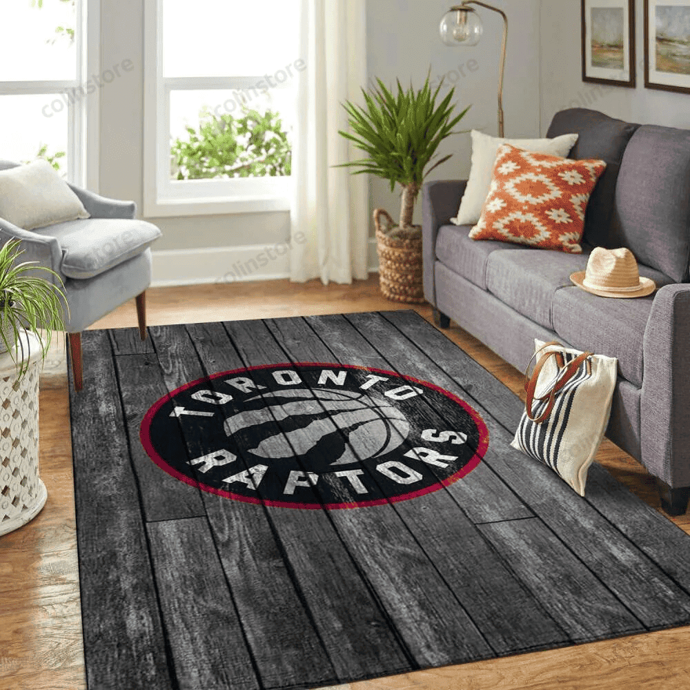 Toronto Raptors Team Logo Grey Rectangle Area Rug – Full Print Carpet For Living Room & Bedroom Home Decor