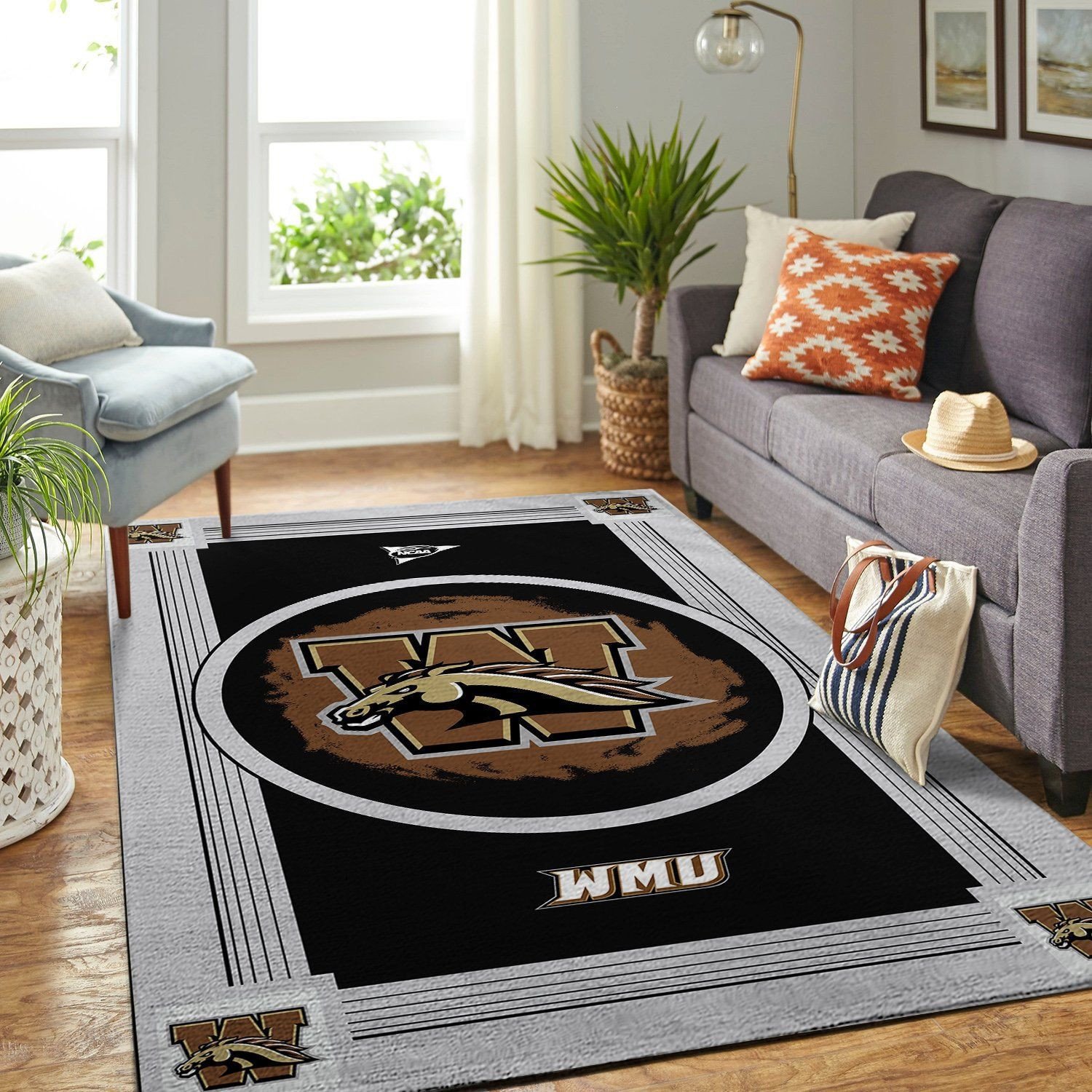 Western Michigan Broncos Team Logo Nice Gift Rectangle Area Rug – Full Print Carpet For Living Room & Bedroom Home Decor