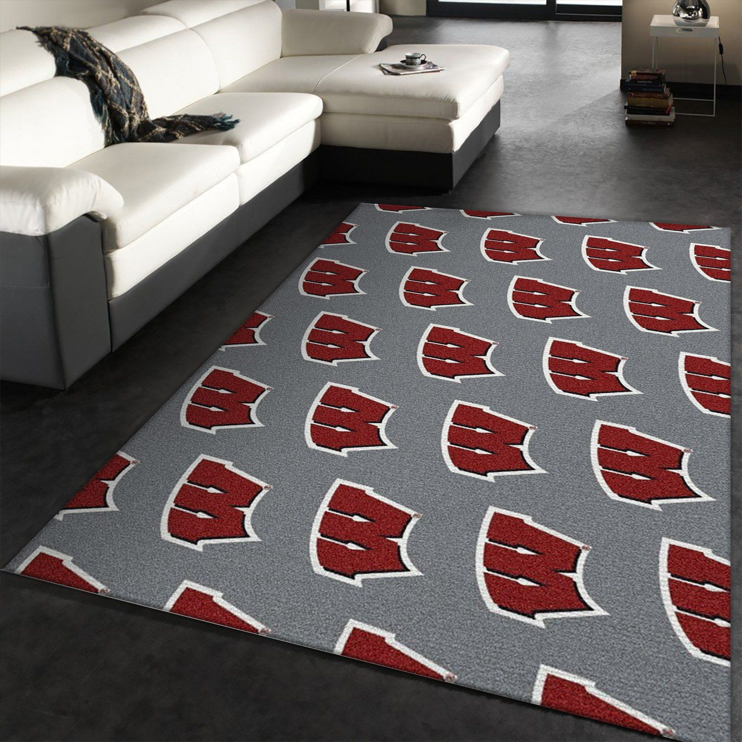 Wisconsin University Repeating Logo Rug Rectangle Area Rug – Full Print Carpet For Living Room & Bedroom Home Decor