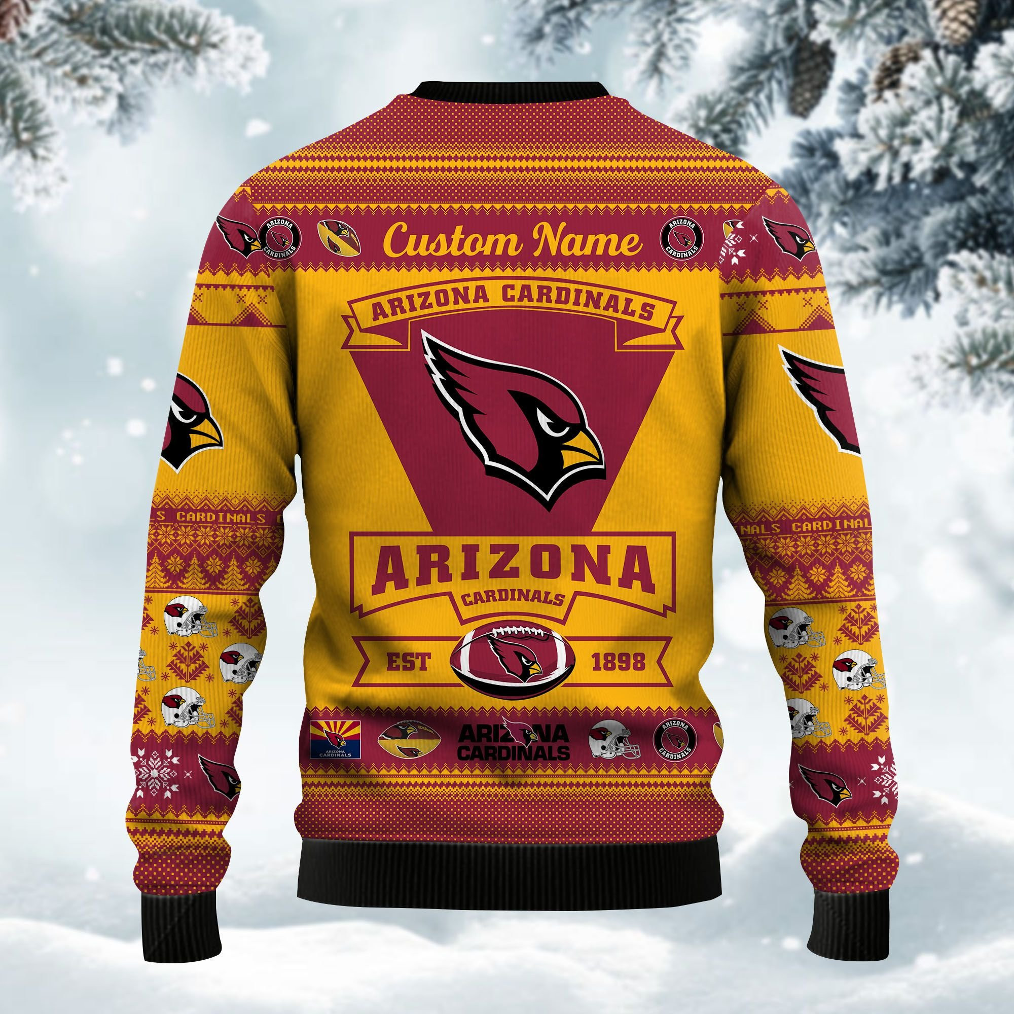 Arizona Cardinals Football Team Logo Custom Name Personalized Ugly Christmas Sweater, Perfect Holiday Gift