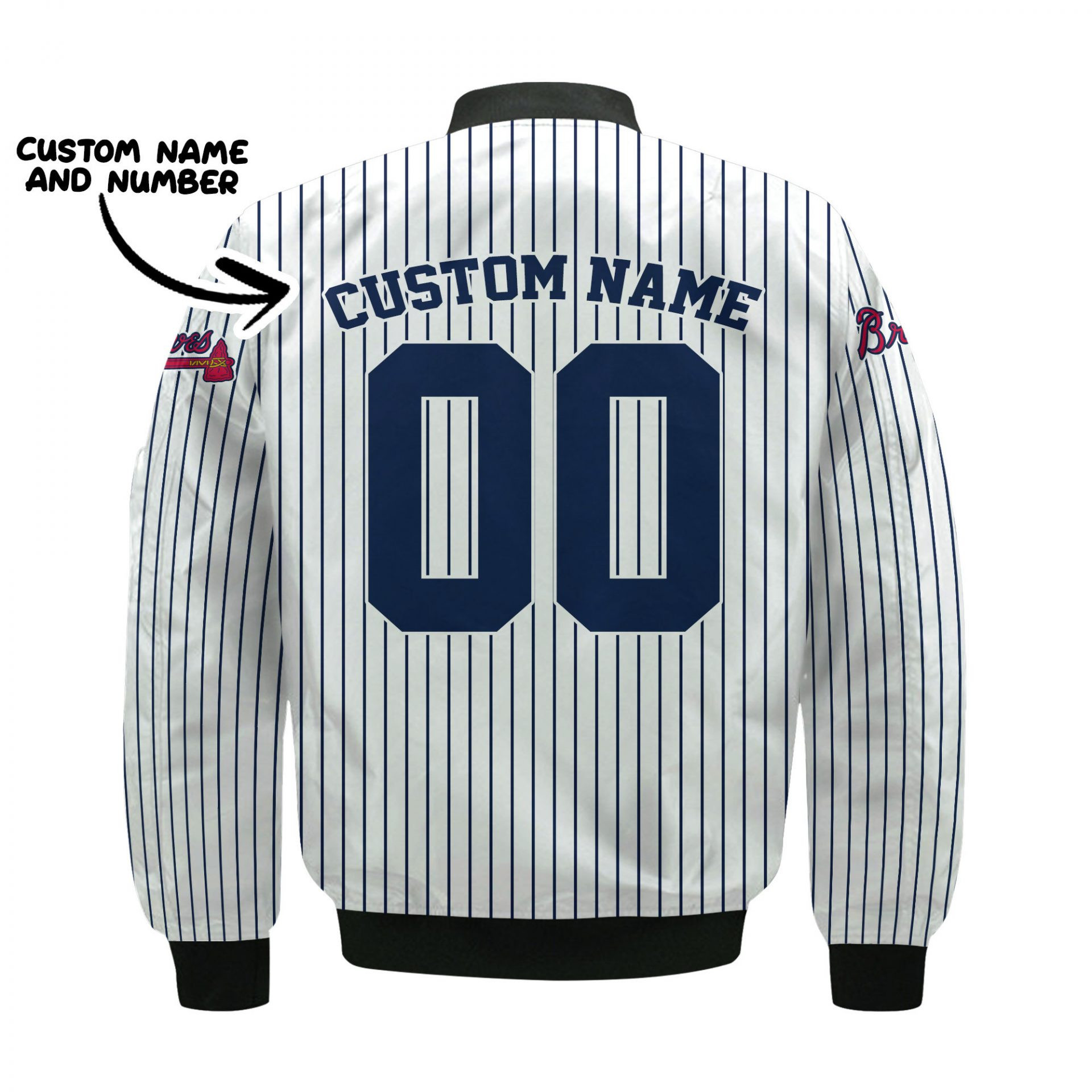 Atlanta Braves Personalized Name Number Uniform Stripes Bomber Jacket | MLB Team Jacket for Men & Women | Baseball Fan Gift