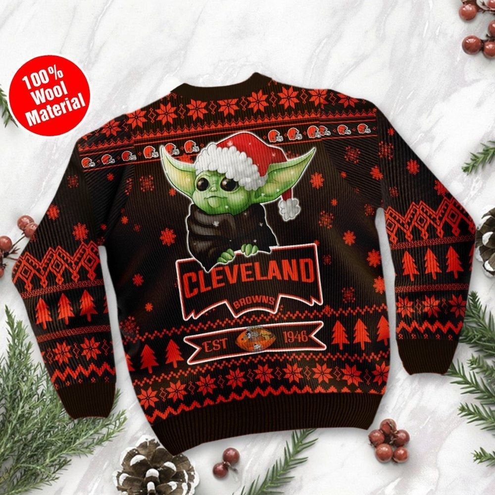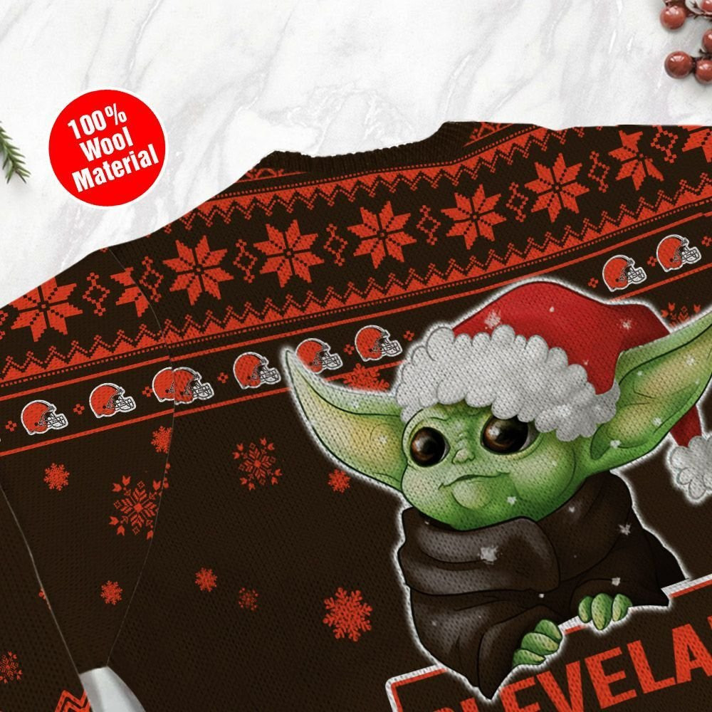 Impress your family and friends with a distinctive blend of style and humor. Our Cleveland Browns Cute Baby Yoda Grogu Ugly Christmas Sweater, Perfect Holiday Gift go beyond mere apparel; they embody a tradition that sparks joy and creates enduring memories. Embrace the festive spirit with these vibrant polyester masterpieces – the perfect choice to make this holiday season memorable for all those seeking festive clothing treasures.