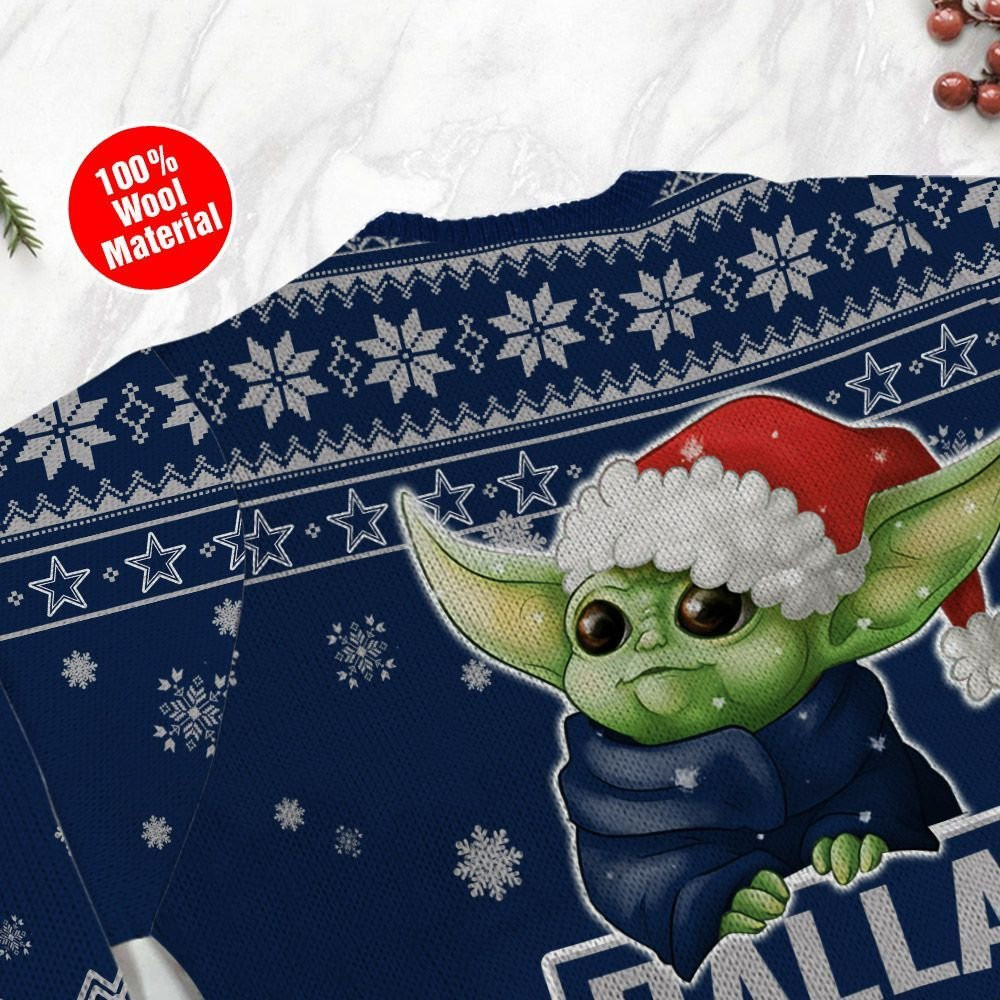 Impress your family and friends with a distinctive blend of style and humor. Our Dallas Cowboys Cute Baby Yoda Grogu Holiday Party Ugly Christmas Sweater, Perfect Holiday Gift go beyond mere apparel; they embody a tradition that sparks joy and creates enduring memories. Embrace the festive spirit with these vibrant polyester masterpieces – the perfect choice to make this holiday season memorable for all those seeking festive clothing treasures.