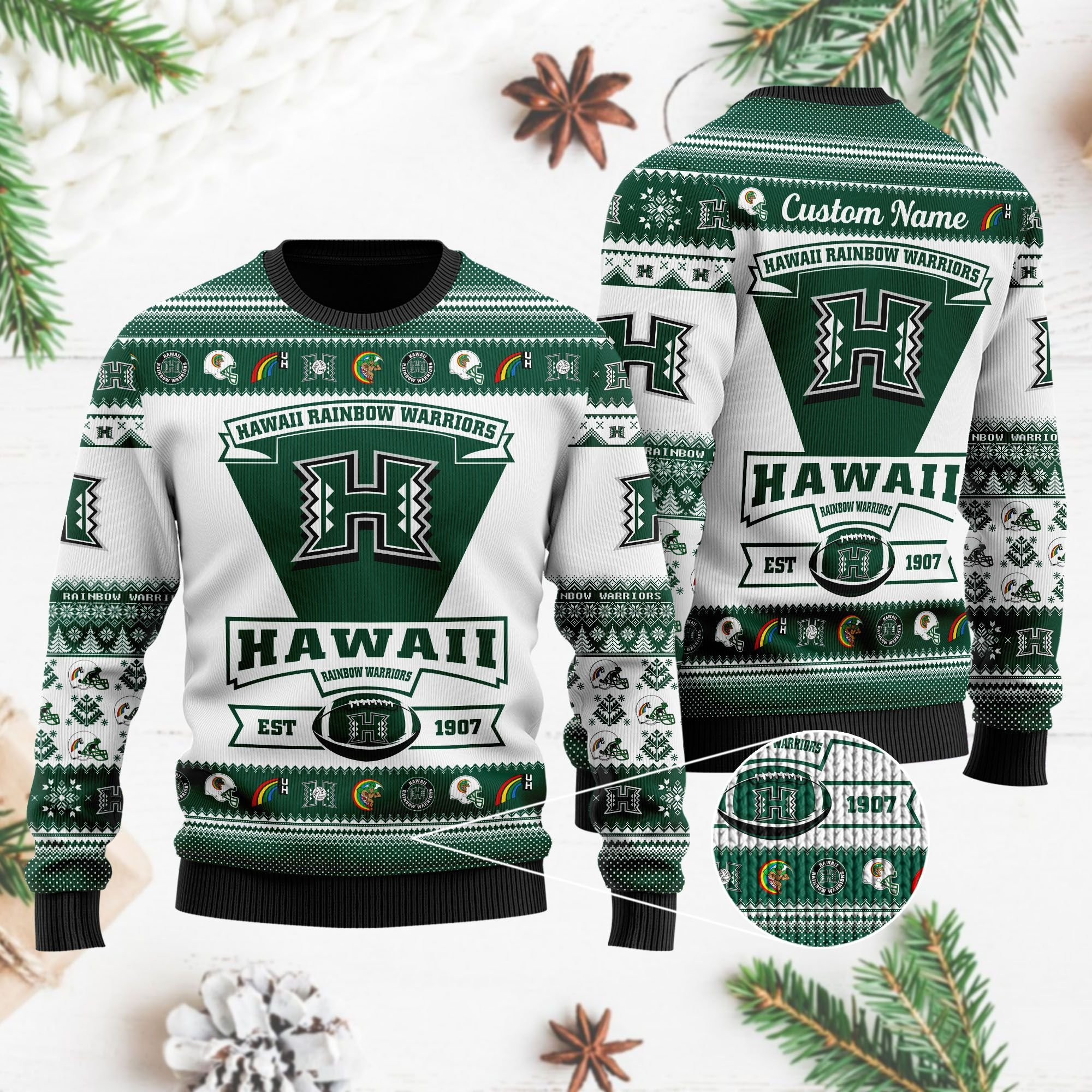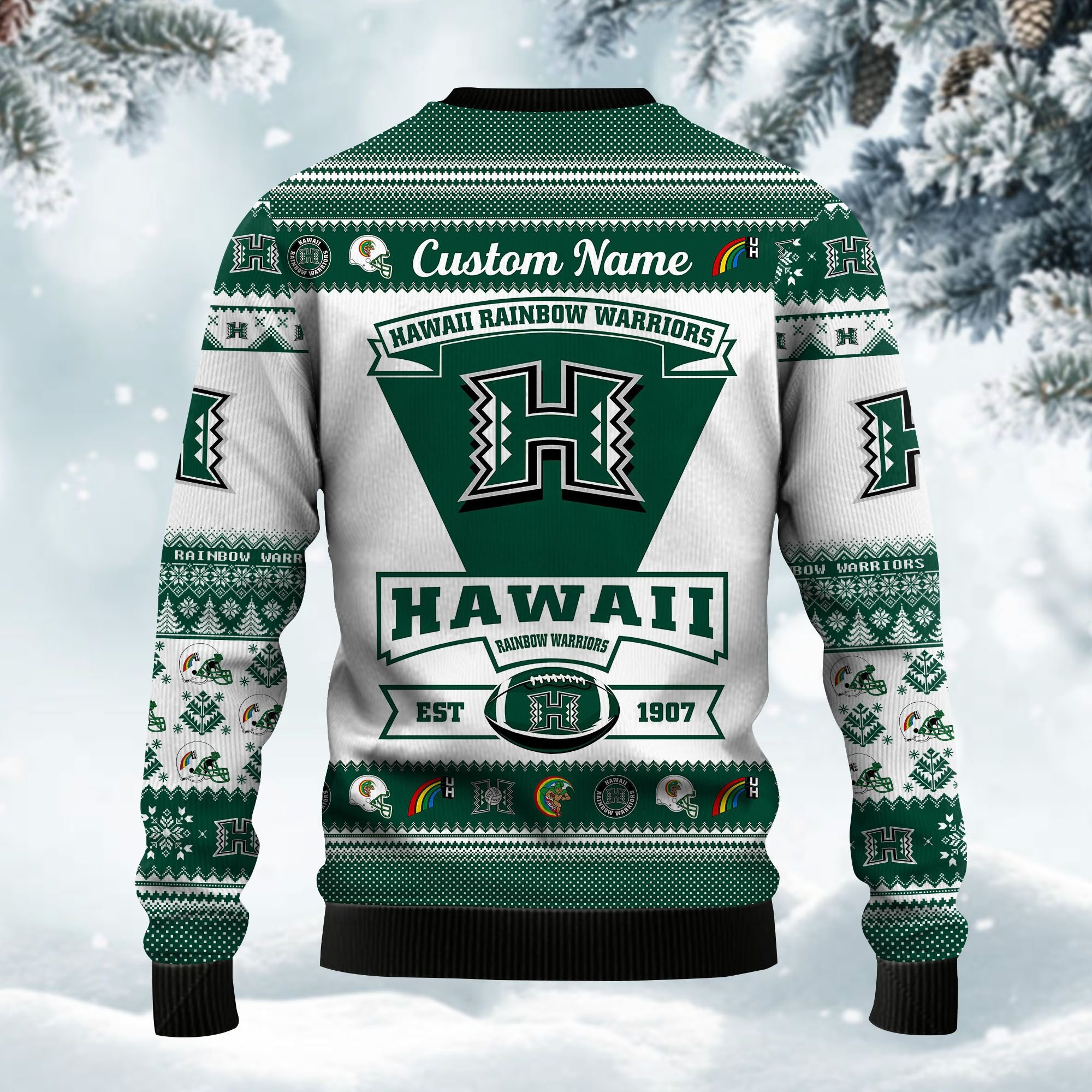 Introducing our eagerly anticipated Hawaii Rainbow Warriors Football Team Logo Personalized Ugly Christmas Sweater, Perfect Holiday Gift 2023 – the pinnacle of festive fashion and a must-have addition to your holiday wardrobe! Carefully crafted from premium polyester, these sweaters not only offer a snug fit but also deliver lasting comfort. Explore a captivating array of holiday-themed designs, meeting the widespread demand for classic motifs, playful characters, and clever slogans.