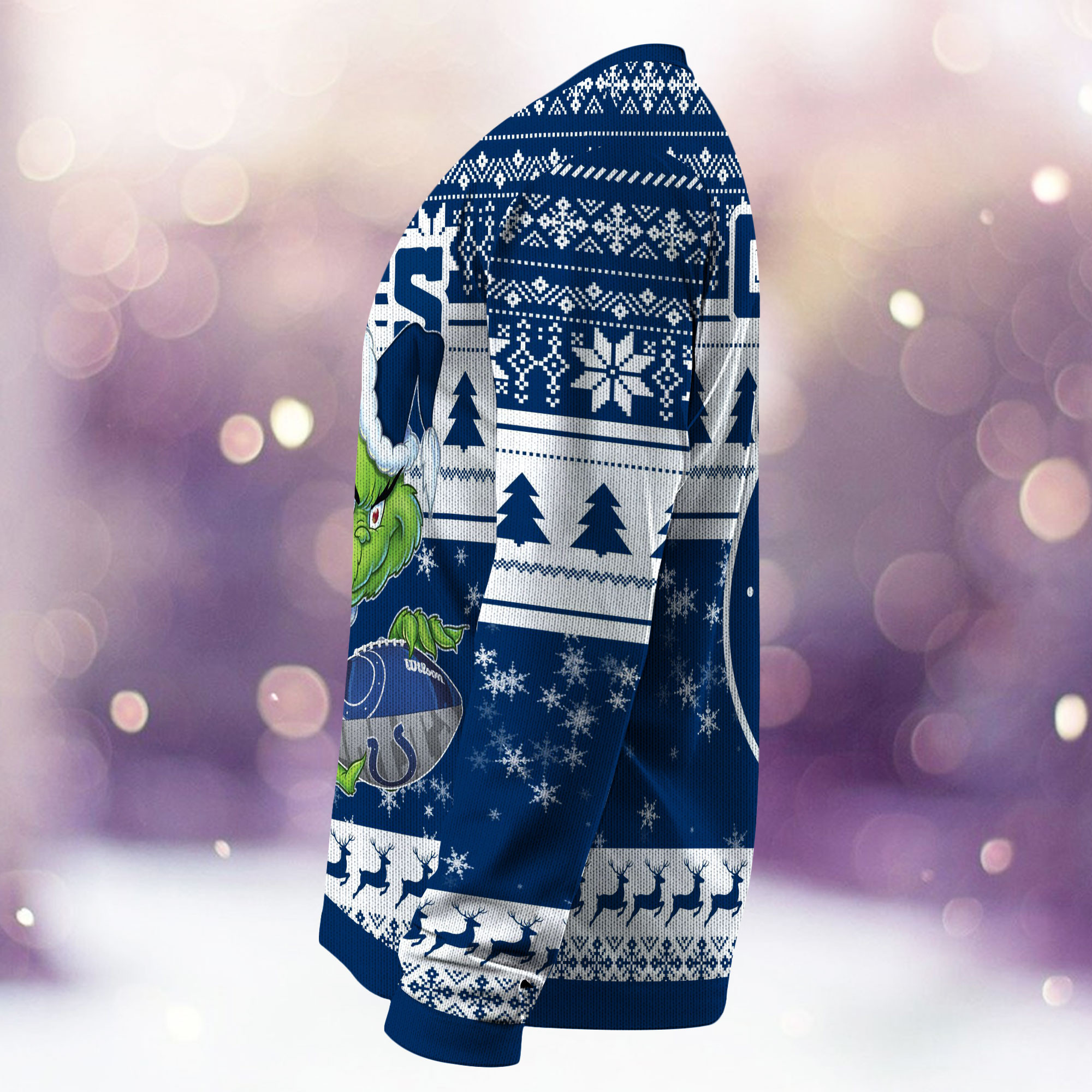 Impress your family and friends with a distinctive blend of style and humor. Our Indianapolis Colts Grinch Ugly Christmas Sweater, go beyond mere apparel; they embody a tradition that sparks joy and creates enduring memories. Embrace the festive spirit with these vibrant polyester masterpieces – the perfect choice to make this holiday season memorable for all those seeking festive clothing treasures.