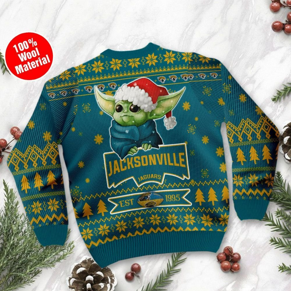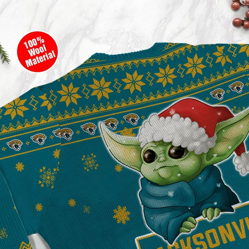 Impress your family and friends with a distinctive blend of style and humor. Our Jacksonville Jaguars Cute Baby Yoda Grogu Ugly Christmas Sweater, Perfect Holiday Gift go beyond mere apparel; they embody a tradition that sparks joy and creates enduring memories. Embrace the festive spirit with these vibrant polyester masterpieces – the perfect choice to make this holiday season memorable for all those seeking festive clothing treasures.