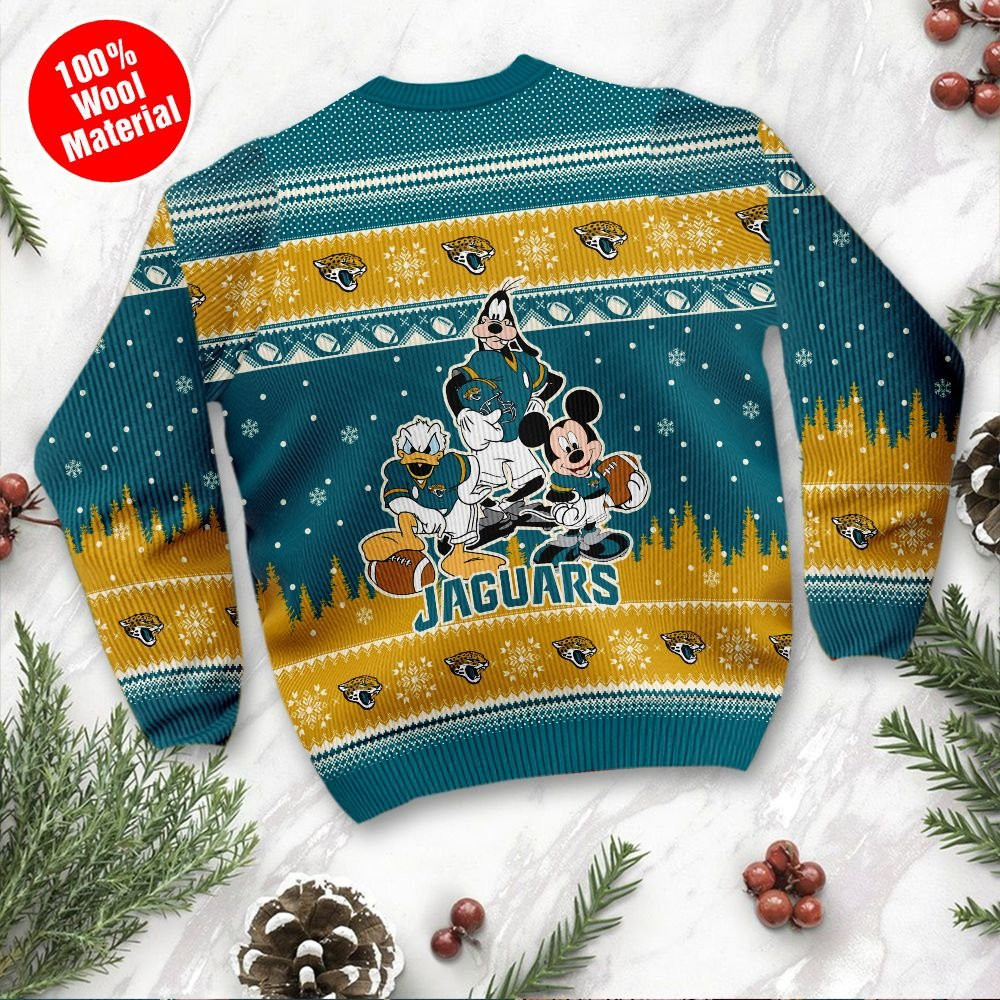 Impress your family and friends with a distinctive blend of style and humor. Our Jacksonville Jaguars Disney Donald Duck Mickey Mouse Goofy Personalized Ugly Christmas Sweater, Perfect Holiday Gift go beyond mere apparel; they embody a tradition that sparks joy and creates enduring memories. Embrace the festive spirit with these vibrant polyester masterpieces – the perfect choice to make this holiday season memorable for all those seeking festive clothing treasures.