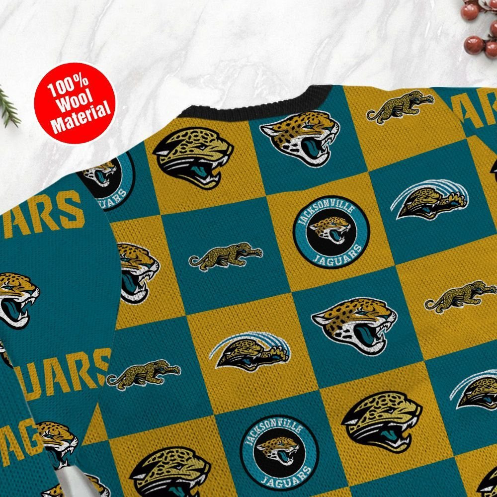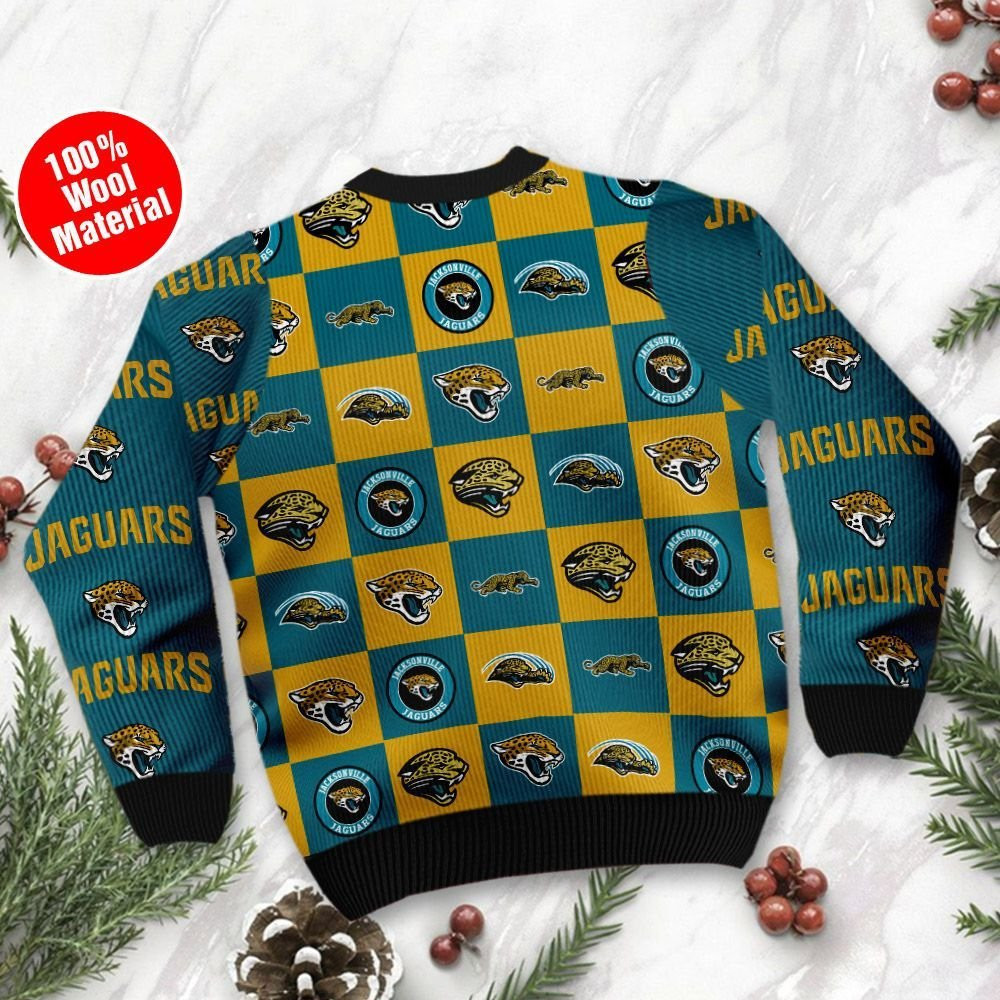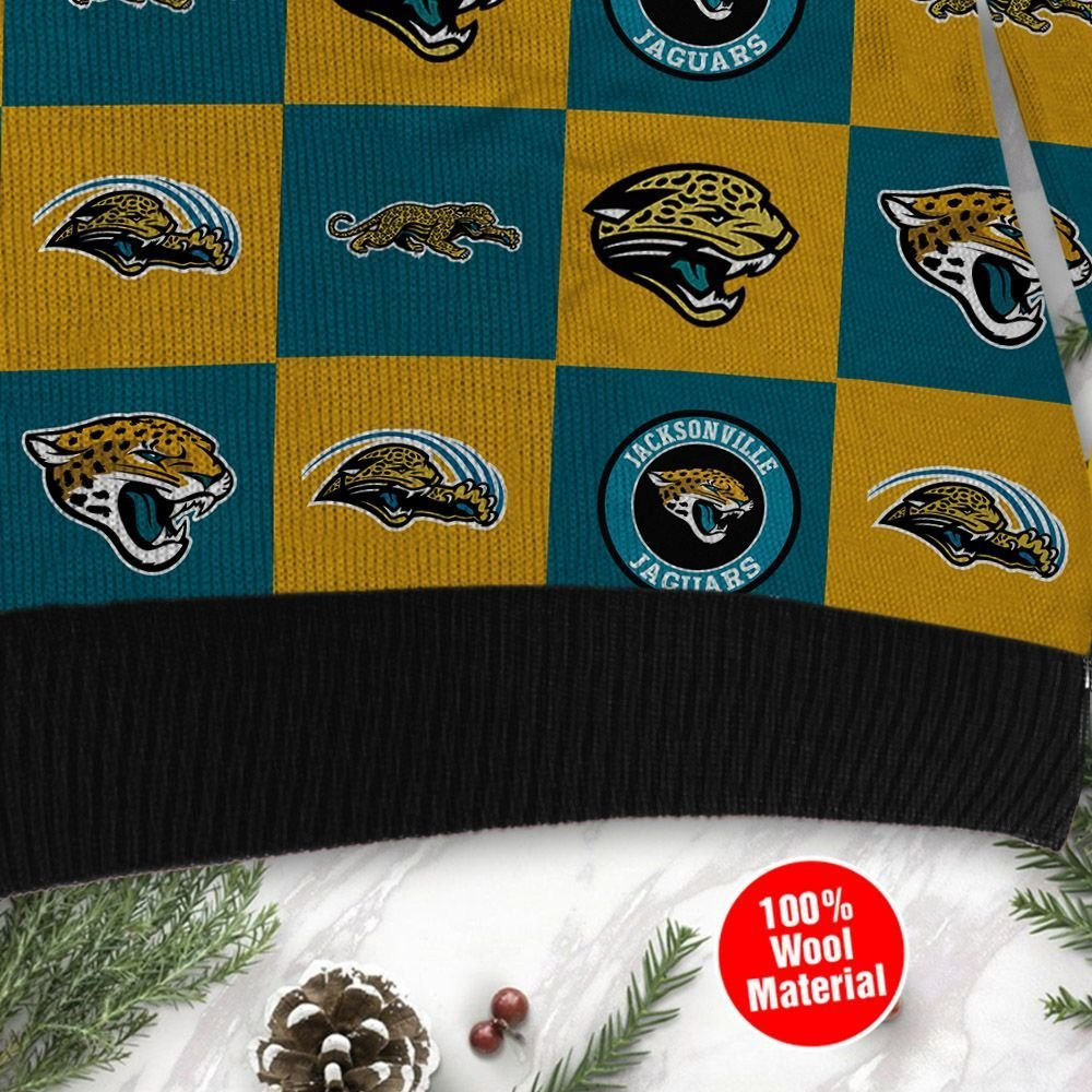 Impress your family and friends with a distinctive blend of style and humor. Our Jacksonville Jaguars Logo Checkered Flannel Design Ugly Christmas Sweater, Perfect Holiday Gift go beyond mere apparel; they embody a tradition that sparks joy and creates enduring memories. Embrace the festive spirit with these vibrant polyester masterpieces – the perfect choice to make this holiday season memorable for all those seeking festive clothing treasures.