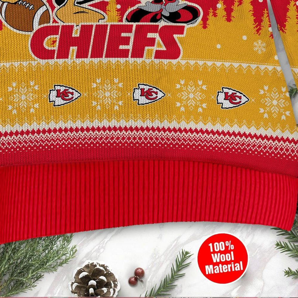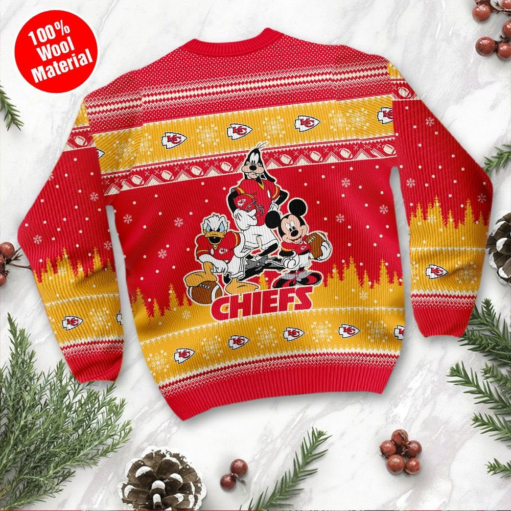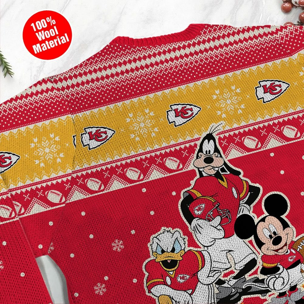 Impress your family and friends with a distinctive blend of style and humor. Our Kansas City Chiefs Disney Donald Duck Mickey Mouse Goofy Personalized Ugly Christmas Sweater, Perfect Holiday Gift go beyond mere apparel; they embody a tradition that sparks joy and creates enduring memories. Embrace the festive spirit with these vibrant polyester masterpieces – the perfect choice to make this holiday season memorable for all those seeking festive clothing treasures.