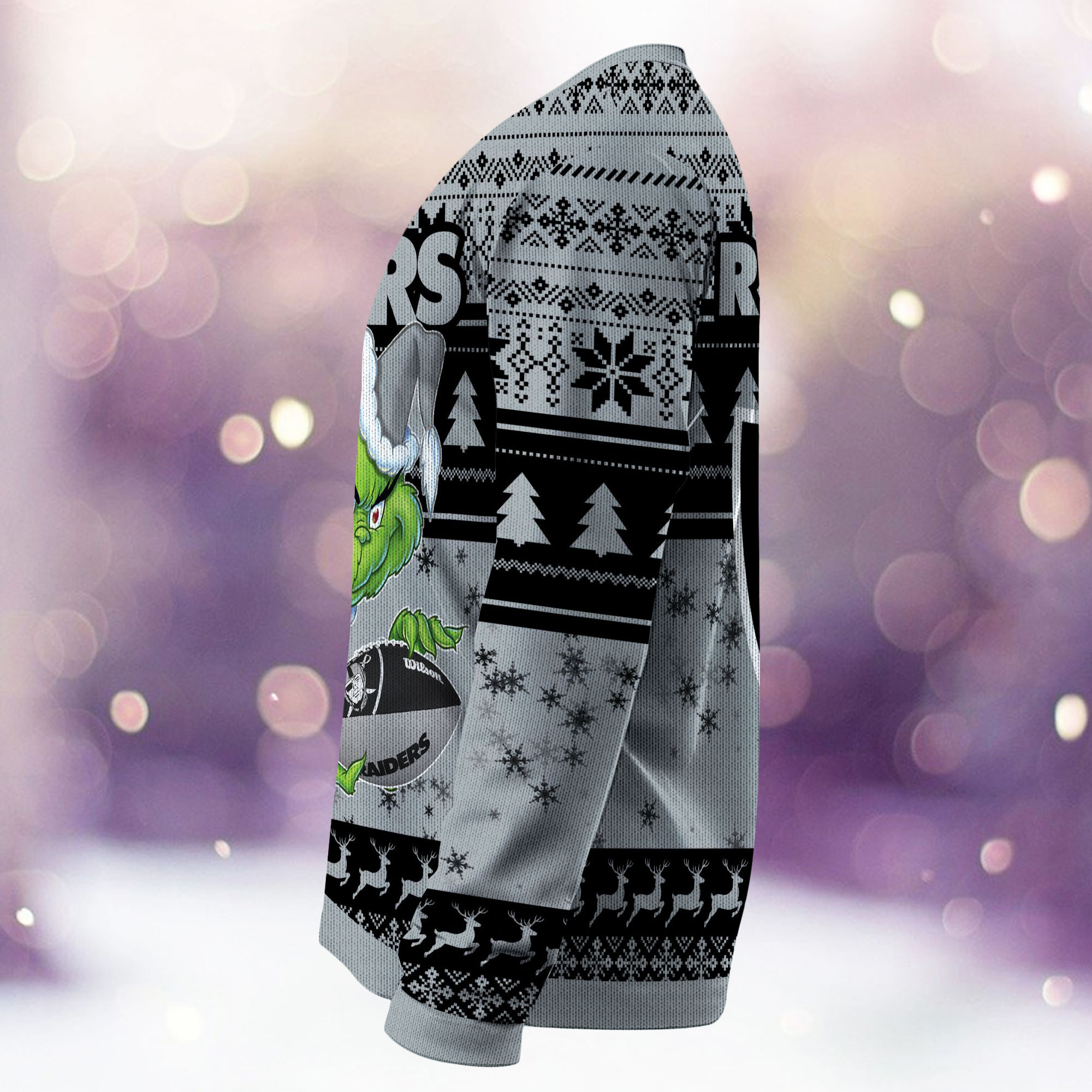Introducing our eagerly anticipated Las Vegas Raiders Grinch Ugly Christmas Sweater, 2023 – the pinnacle of festive fashion and a must-have addition to your holiday wardrobe! Carefully crafted from premium polyester, these sweaters not only offer a snug fit but also deliver lasting comfort. Explore a captivating array of holiday-themed designs, meeting the widespread demand for classic motifs, playful characters, and clever slogans.