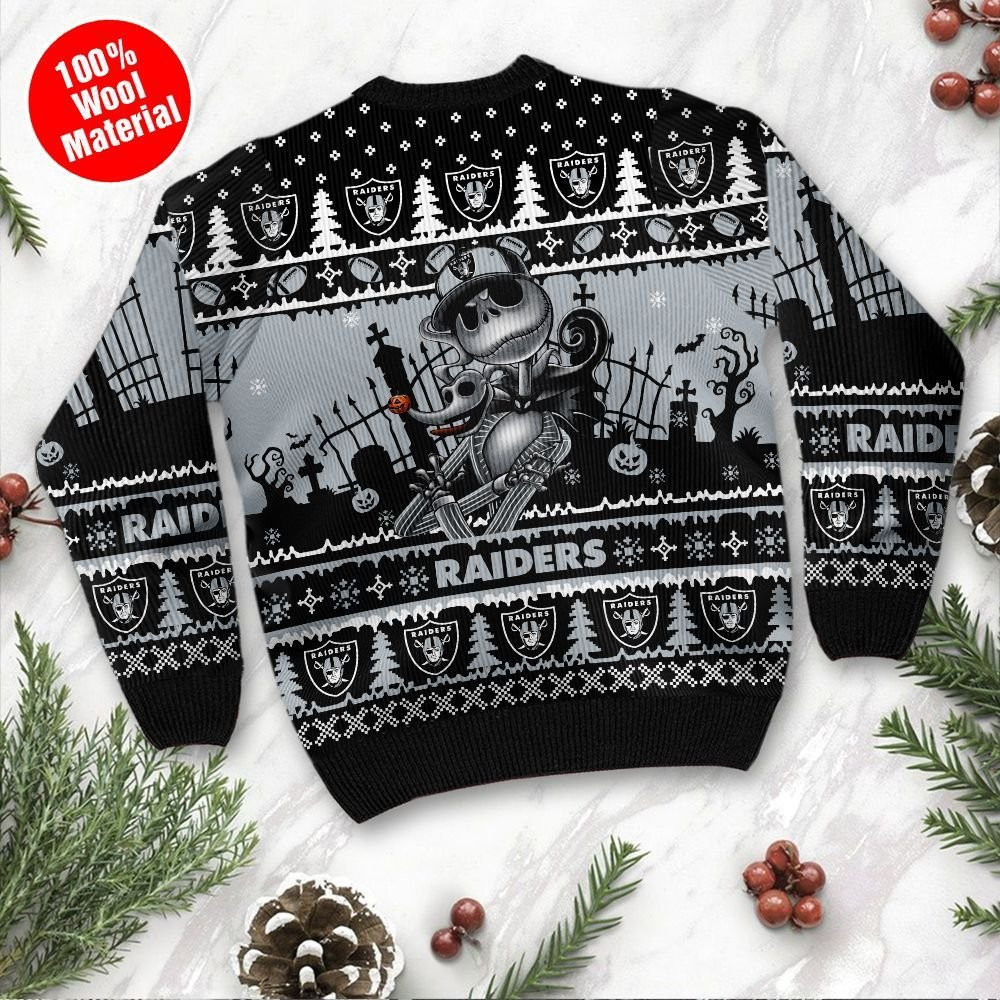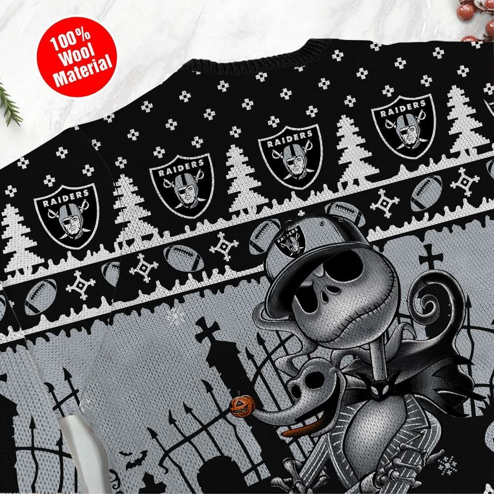 Impress your family and friends with a distinctive blend of style and humor. Our Las Vegas Raiders Jack Skellington Halloween Ugly Christmas Sweater, Perfect Holiday Gift go beyond mere apparel; they embody a tradition that sparks joy and creates enduring memories. Embrace the festive spirit with these vibrant polyester masterpieces – the perfect choice to make this holiday season memorable for all those seeking festive clothing treasures.