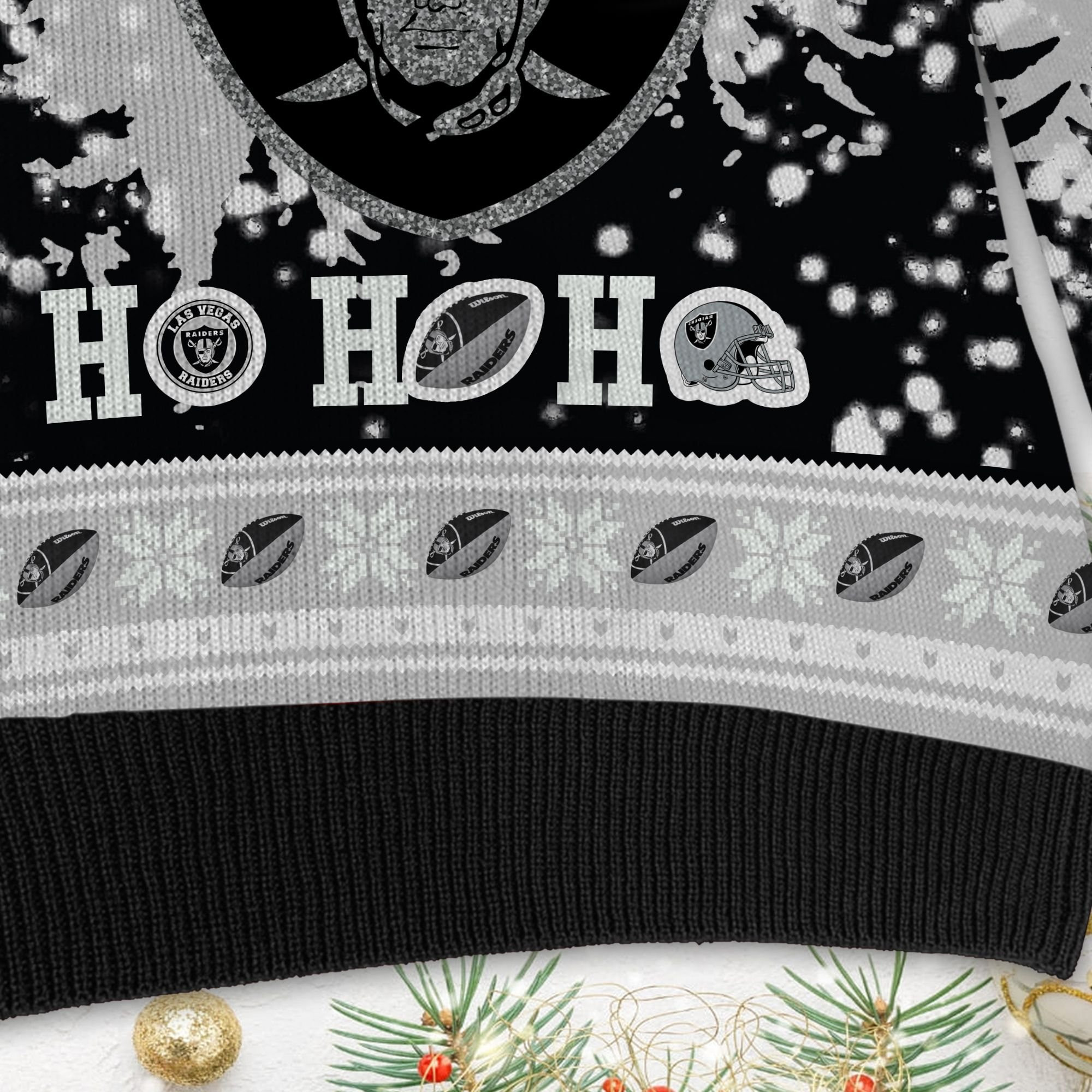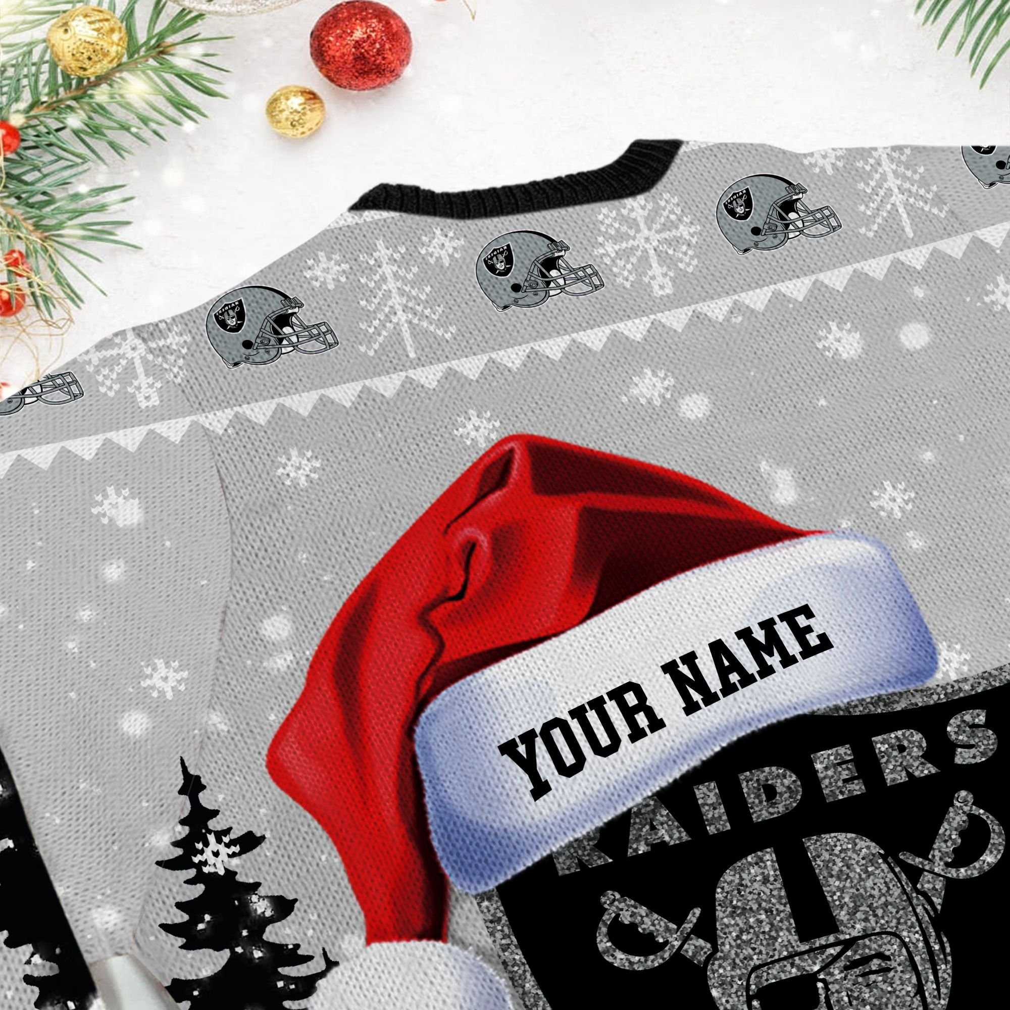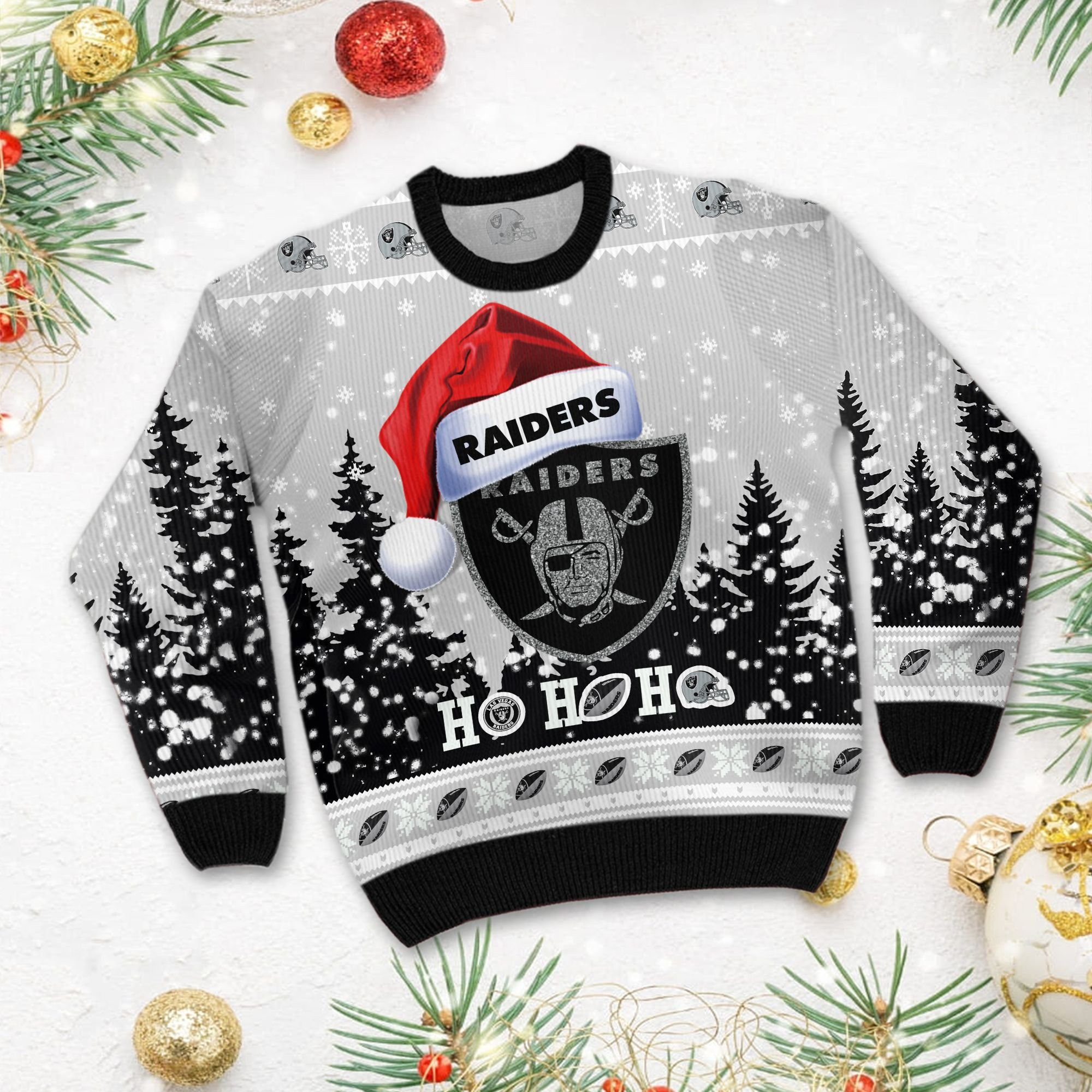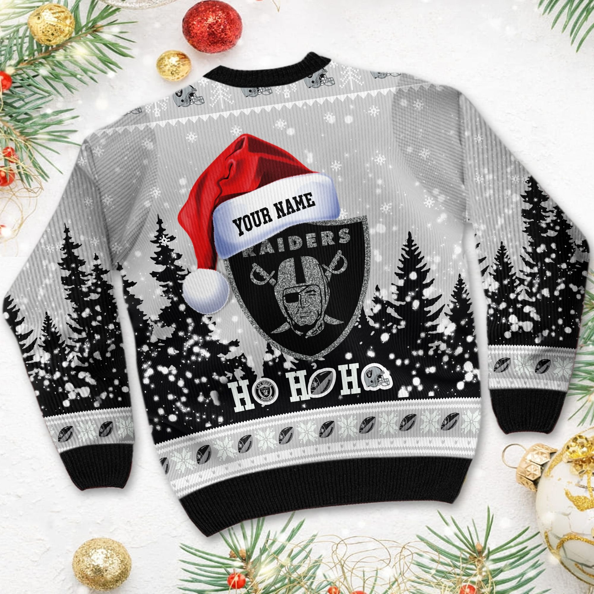 Las Vegas Raiders Symbol Wearing Santa Claus Hat Ho Ho Ho Custom Personalized Ugly Christmas Sweater Perfect Holiday Gift