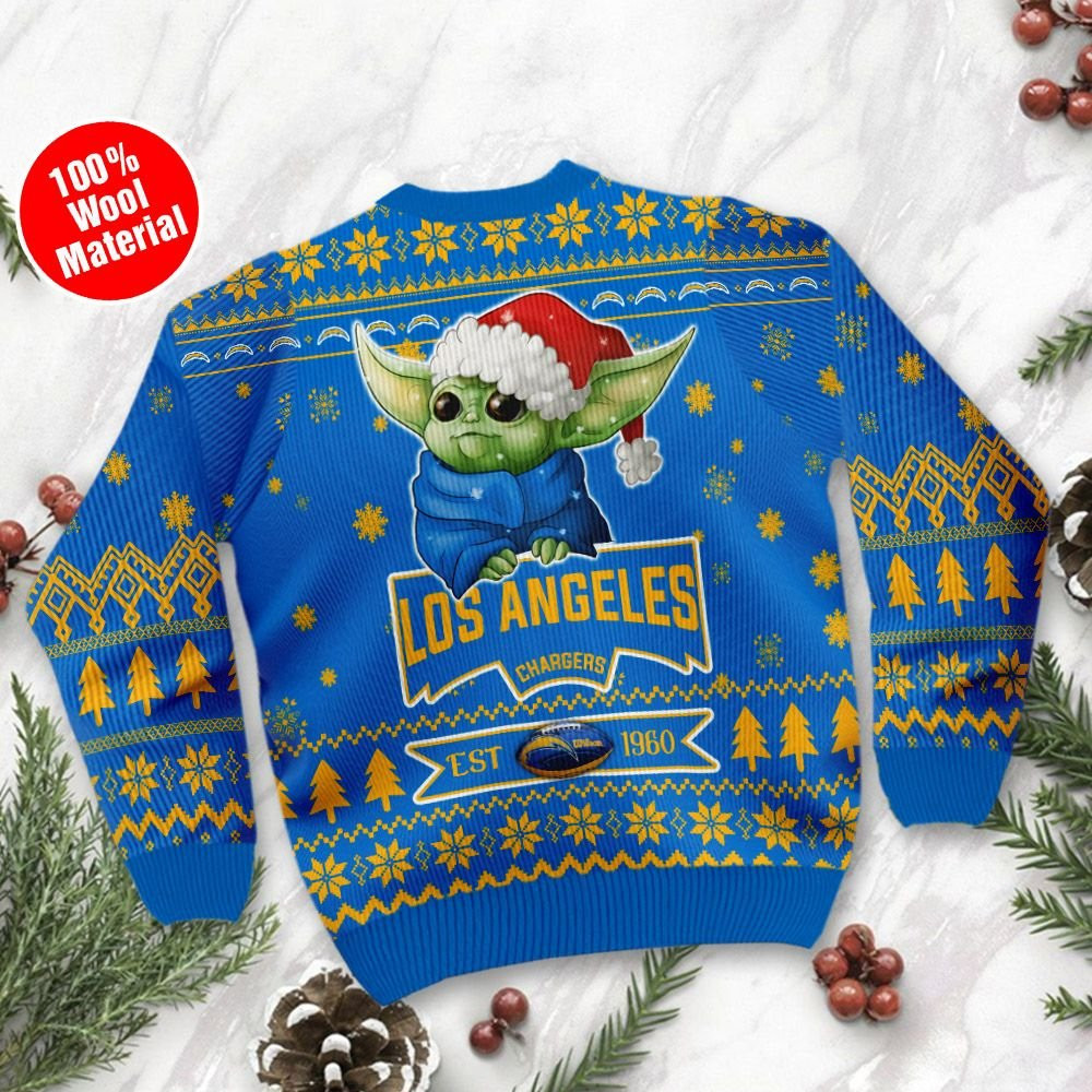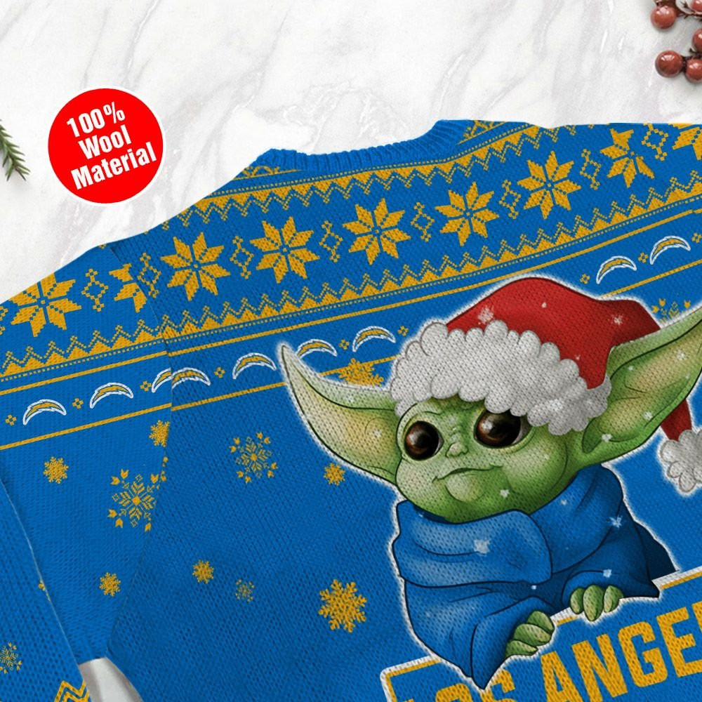 Los Angeles Chargers Cute Baby Yoda Grogu Holiday Party Ugly Christmas Sweater, Perfect Holiday Gift