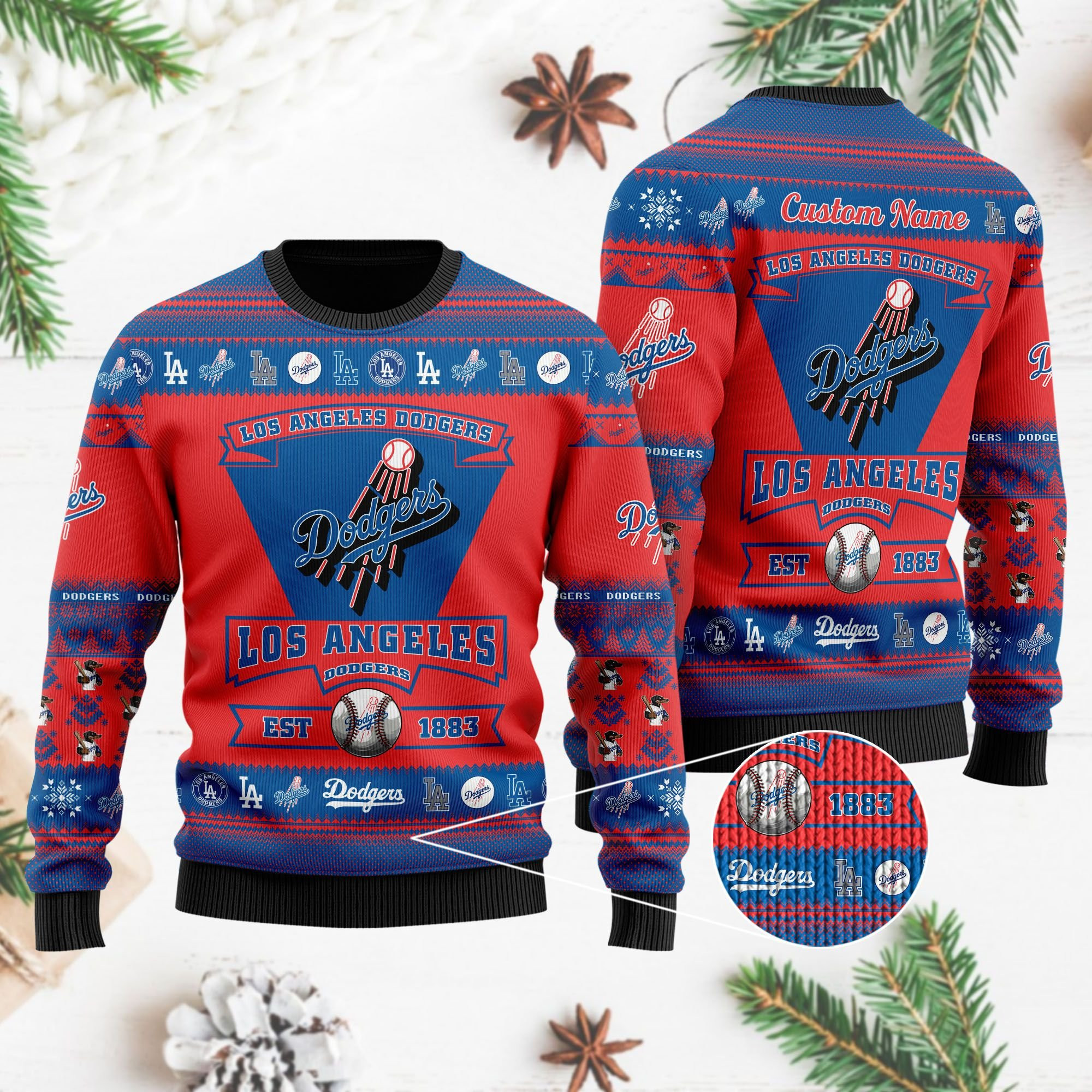 Introducing our eagerly anticipated Los Angeles Dodgers Football Team Logo Personalized Ugly Christmas Sweater, Perfect Holiday Gift 2023 – the pinnacle of festive fashion and a must-have addition to your holiday wardrobe! Carefully crafted from premium polyester, these sweaters not only offer a snug fit but also deliver lasting comfort. Explore a captivating array of holiday-themed designs, meeting the widespread demand for classic motifs, playful characters, and clever slogans.