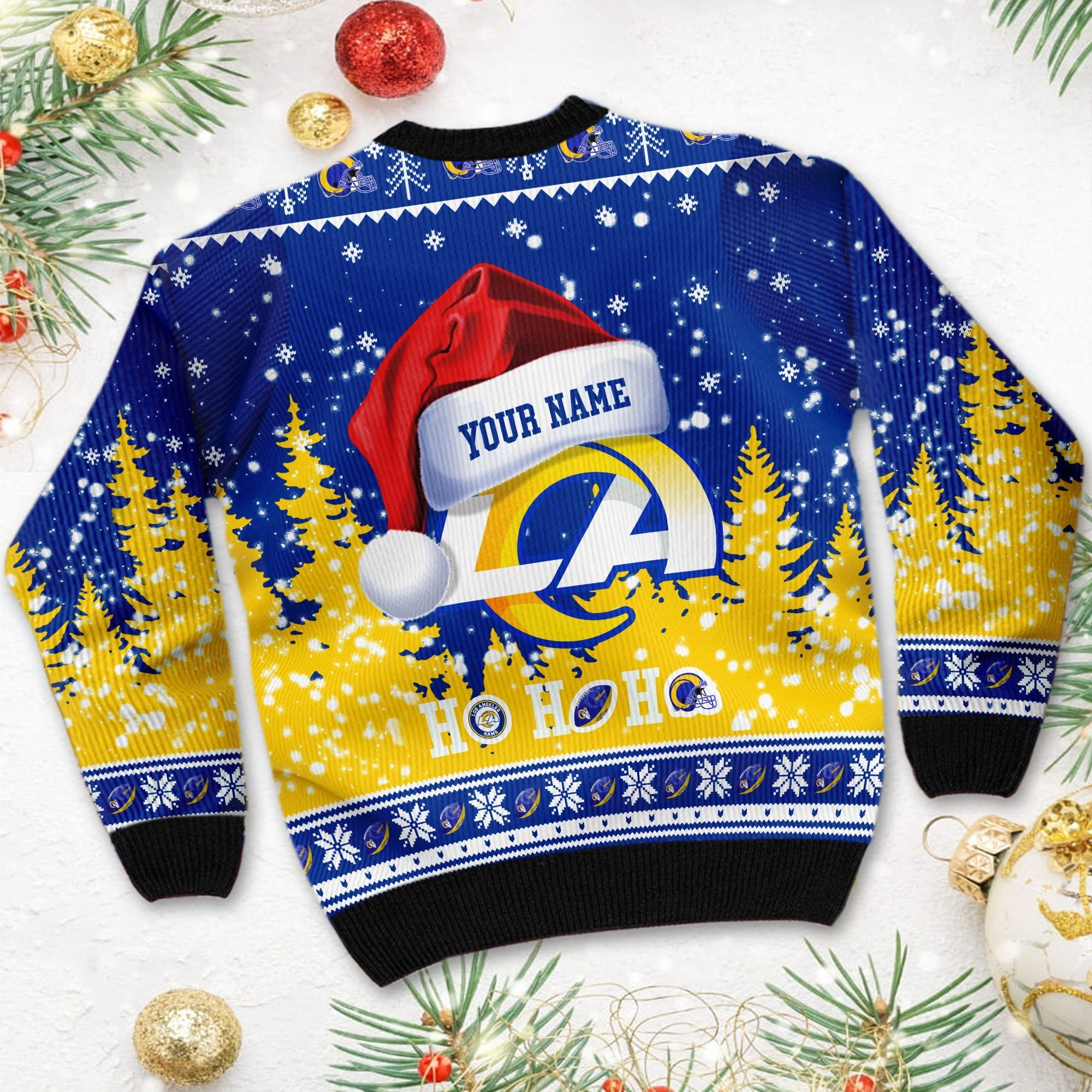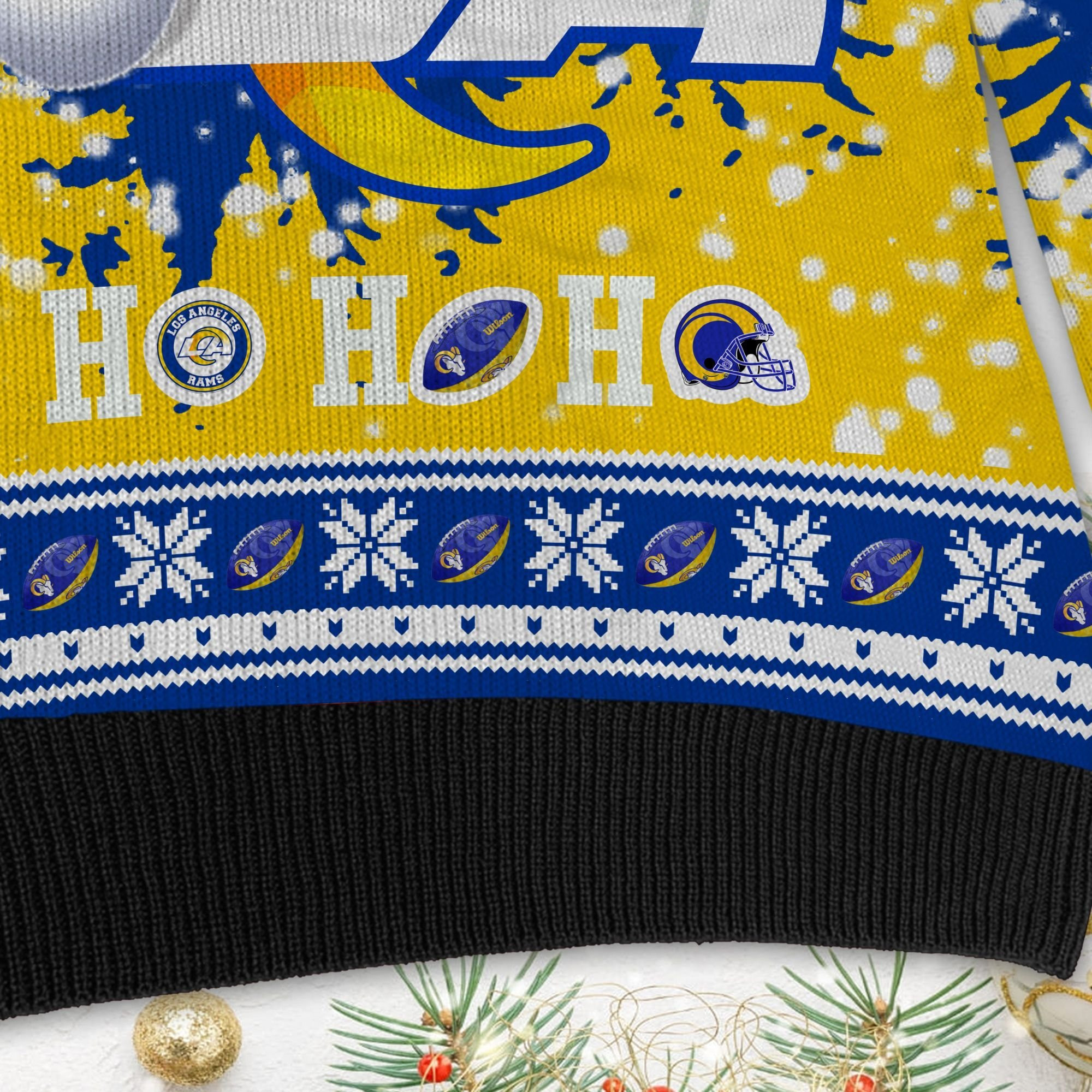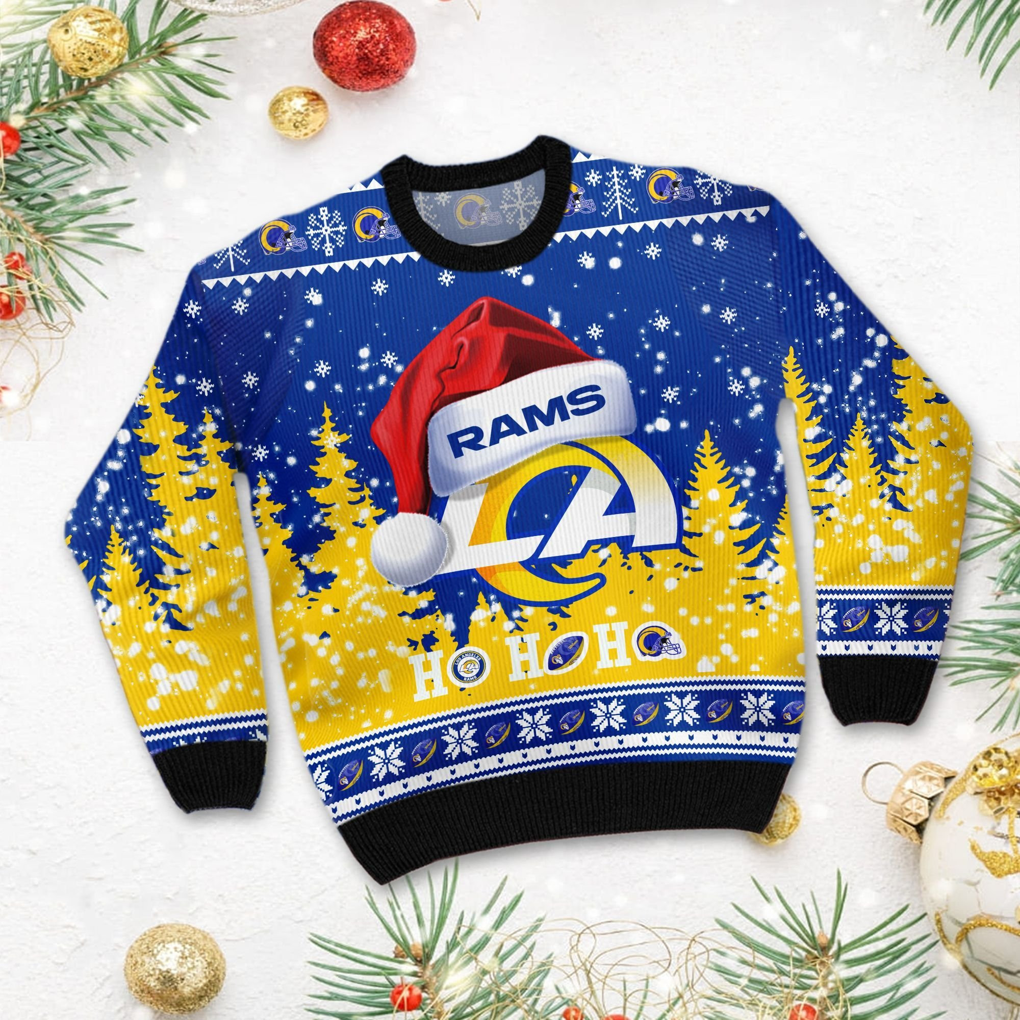Los Angeles Rams Symbol Wearing Santa Claus Hat Ho Ho Ho Ugly Christmas Sweater