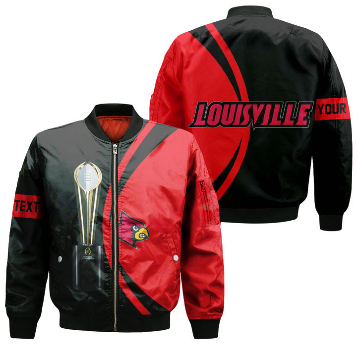 Louisville Cardinals Personalized Text Champions Bomber Jacket | NCAA College Team Jacket for Men & Women | Sports Fan Gift