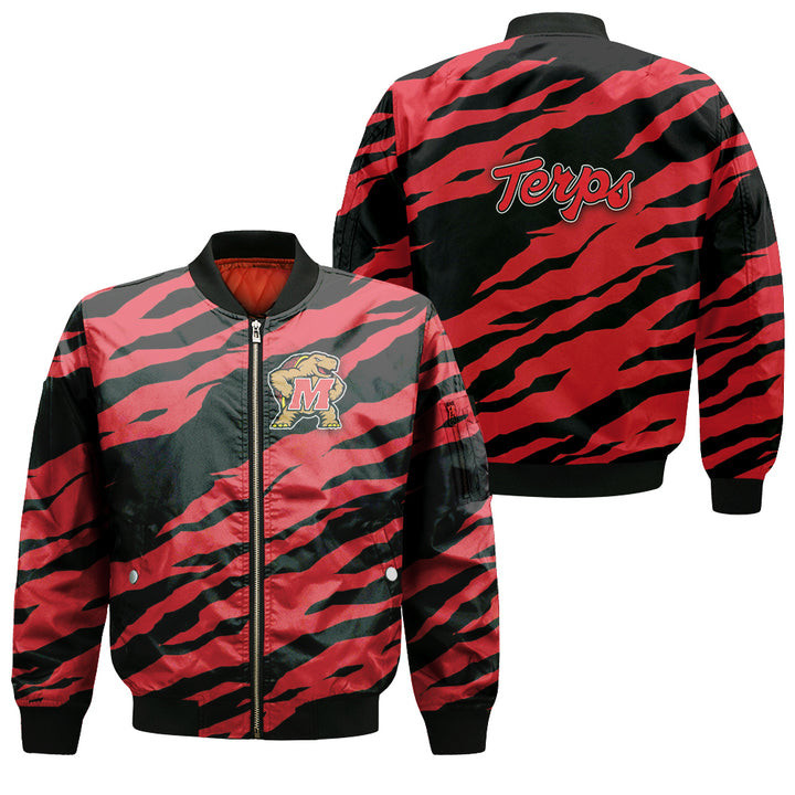 Maryland Terrapins Red Black Bomber Jacket | NCAA College Team Jacket for Men & Women | Sports Fan Gift