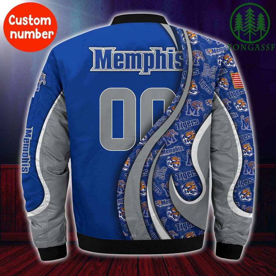 Memphis Tigers Personalized Name Number Blue Grey Bomber Jacket | NCAA College Team Jacket for Men & Women | Sports Fan Gift