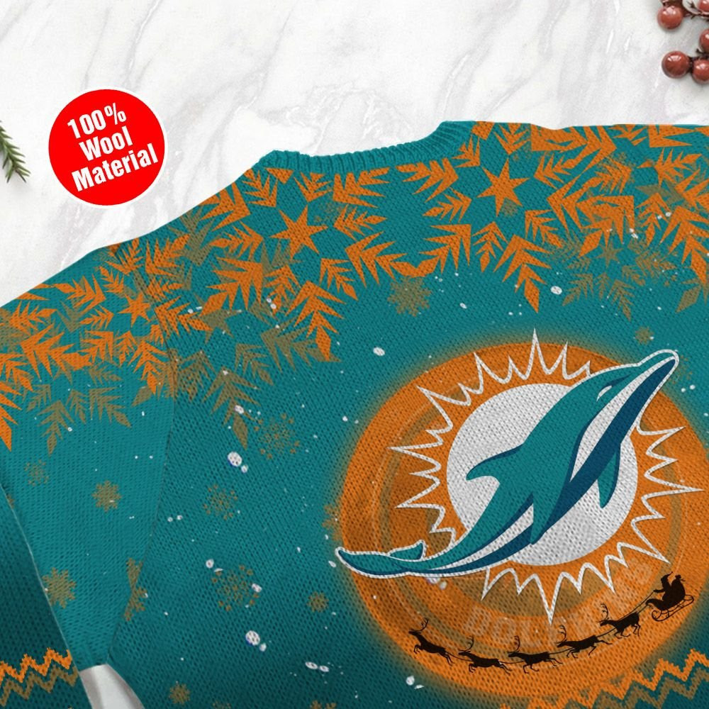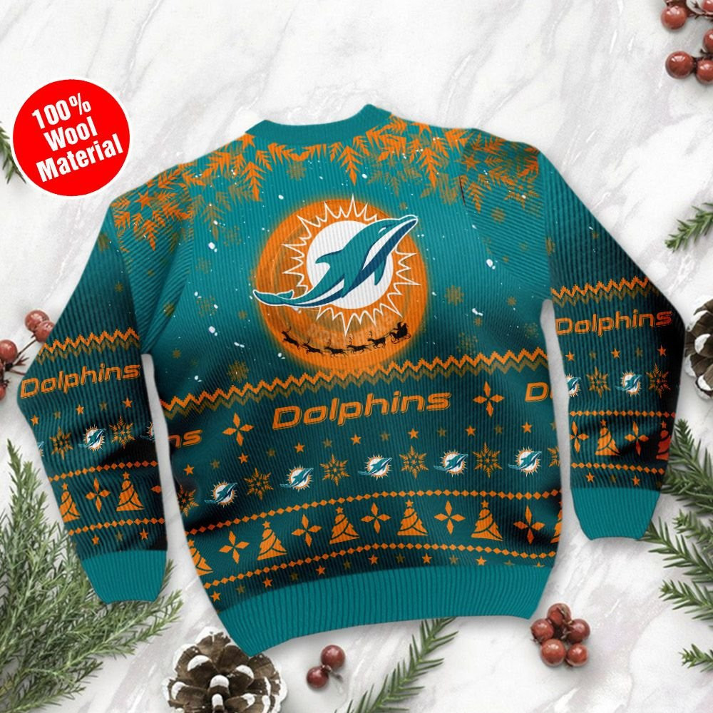 Impress your family and friends with a distinctive blend of style and humor. Our Miami Dolphins Santa Claus In The Moon Ugly Christmas Sweater, Perfect Holiday Gift go beyond mere apparel; they embody a tradition that sparks joy and creates enduring memories. Embrace the festive spirit with these vibrant polyester masterpieces – the perfect choice to make this holiday season memorable for all those seeking festive clothing treasures.