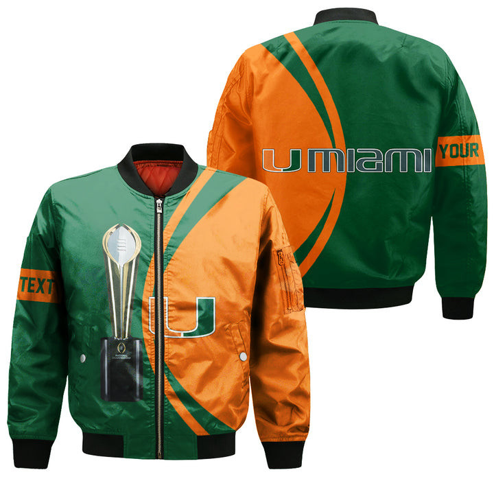 Miami Hurricanes Personalized Text Champions Bomber Jacket | NCAA College Team Jacket for Men & Women | Sports Fan Gift