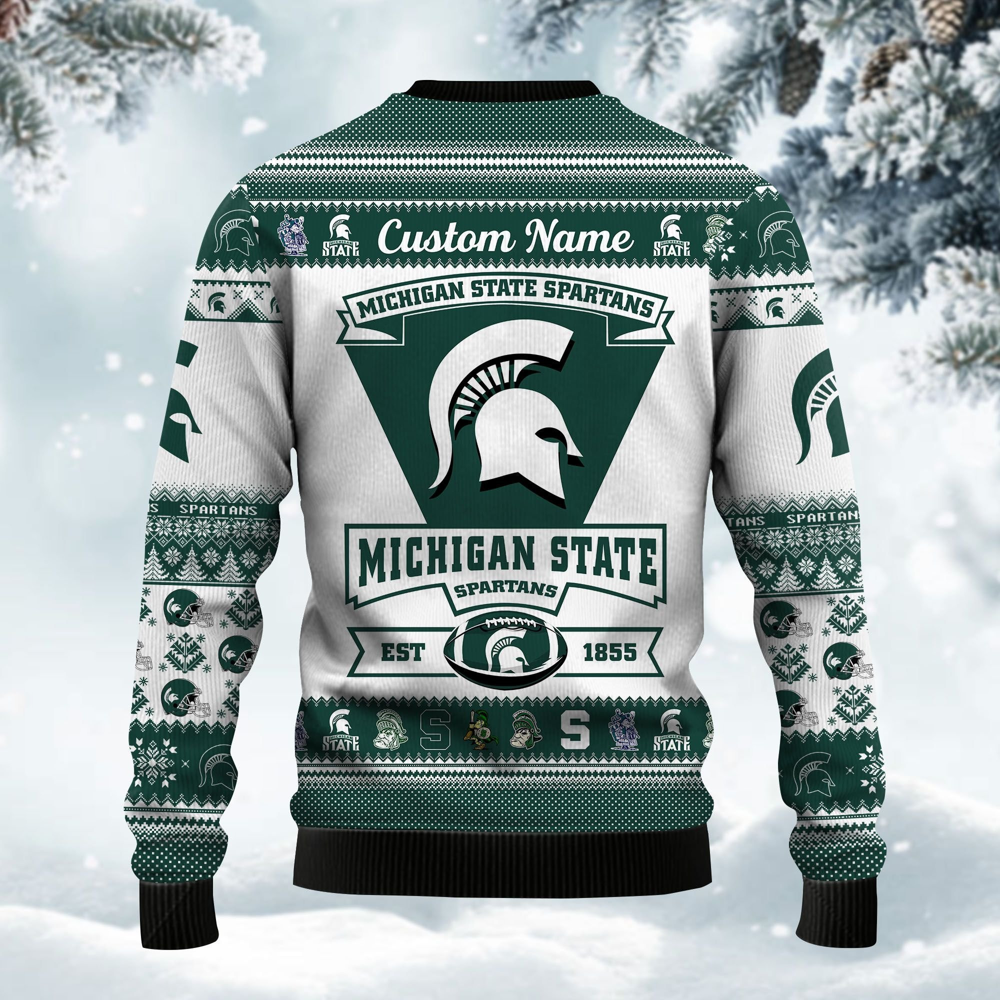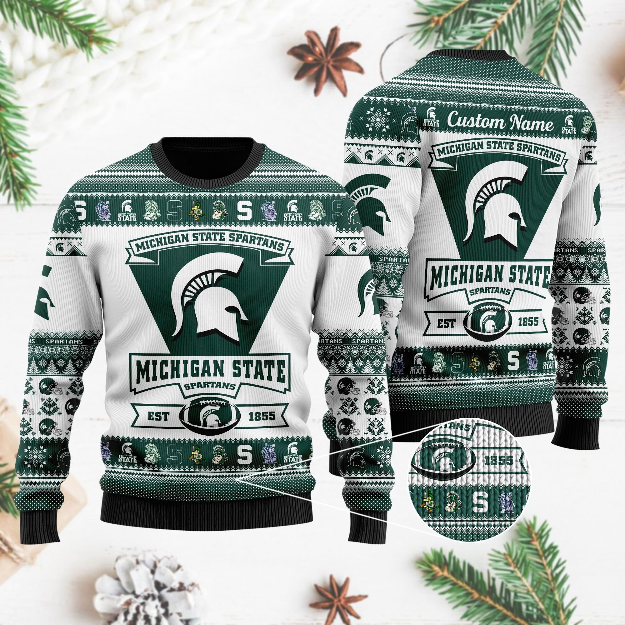 Introducing our eagerly anticipated Michigan State Spartans Football Team Logo Personalized Ugly Christmas Sweater, Perfect Holiday Gift 2023 – the pinnacle of festive fashion and a must-have addition to your holiday wardrobe! Carefully crafted from premium polyester, these sweaters not only offer a snug fit but also deliver lasting comfort. Explore a captivating array of holiday-themed designs, meeting the widespread demand for classic motifs, playful characters, and clever slogans.