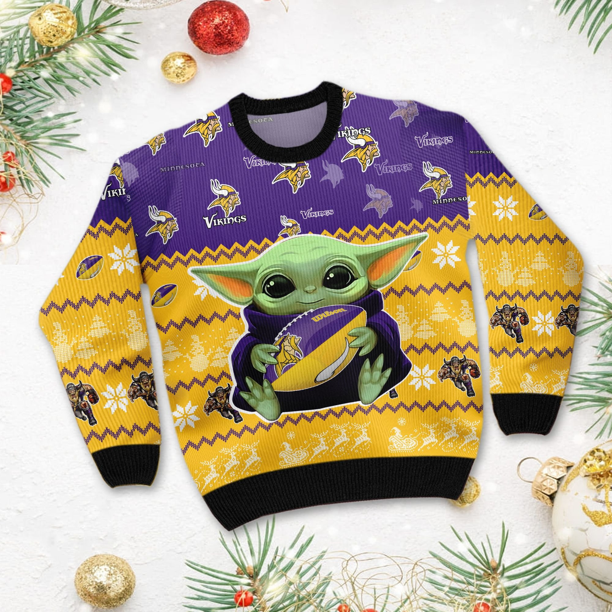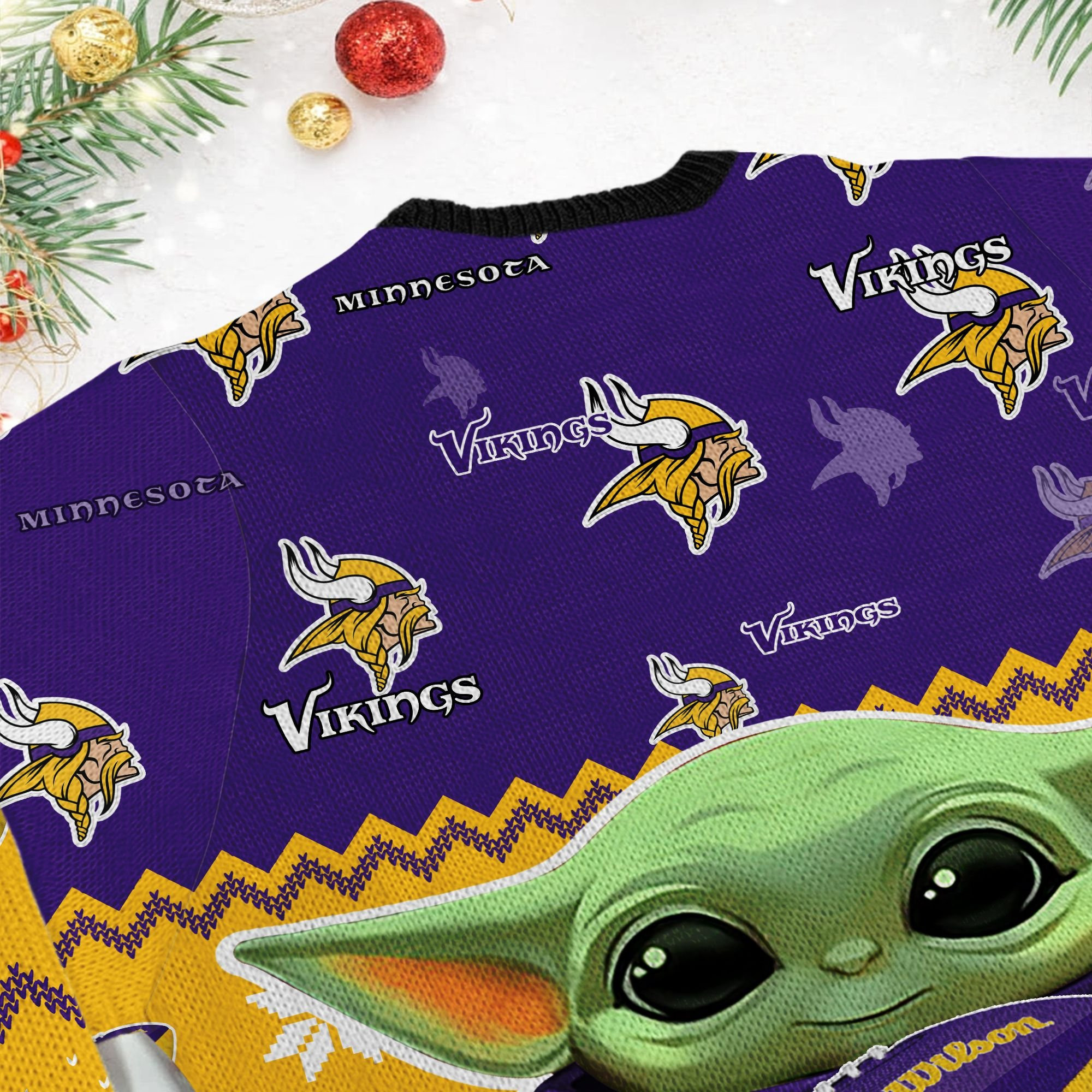 Introducing our eagerly anticipated Minnesota Vikings Baby Yoda Shirt For American Football Fans Ugly Christmas Sweater, Perfect Holiday Gift 2023 – the pinnacle of festive fashion and a must-have addition to your holiday wardrobe! Carefully crafted from premium polyester, these sweaters not only offer a snug fit but also deliver lasting comfort. Explore a captivating array of holiday-themed designs, meeting the widespread demand for classic motifs, playful characters, and clever slogans.